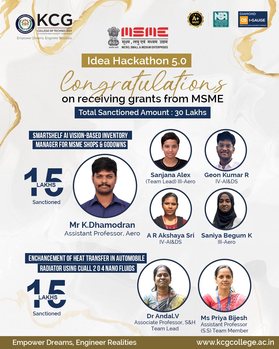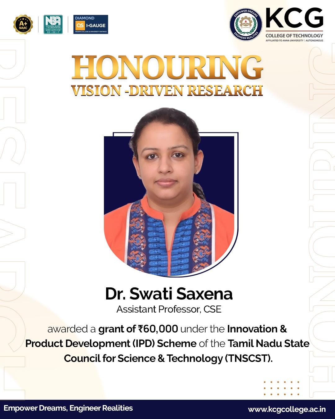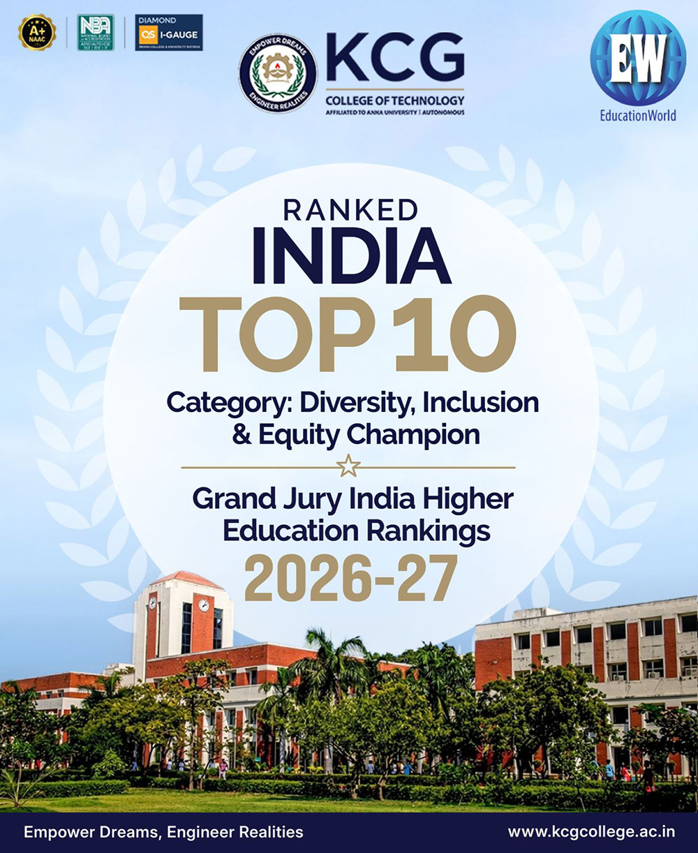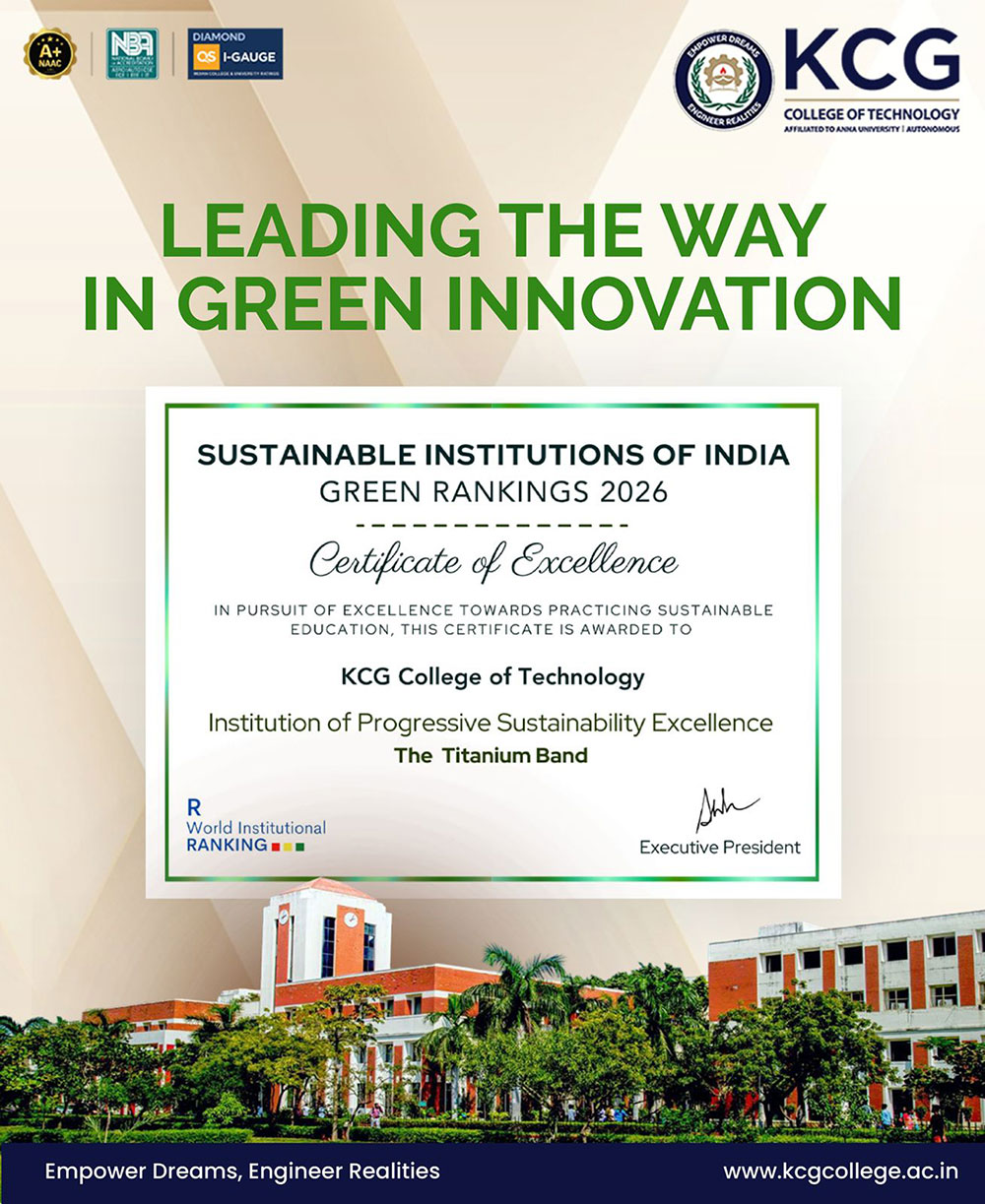 KCG Tech is an autonomous engineering college affiliated to Anna University and has top accreditations