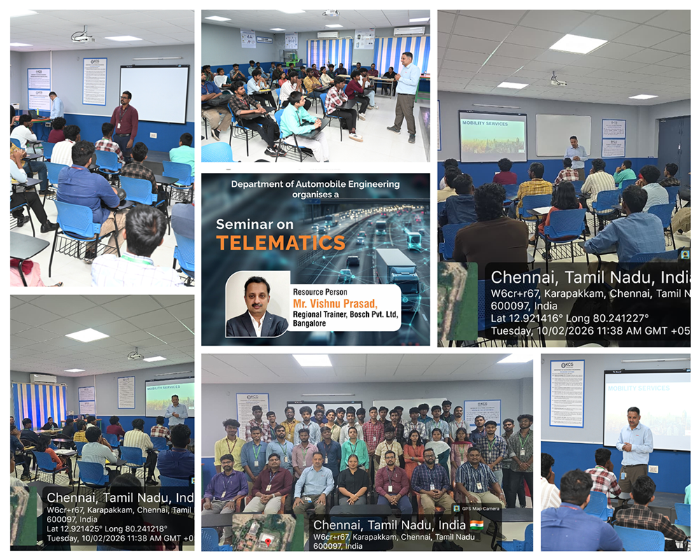 The Department of Automobile Engineering organized a seminar titled “Telematics” on 10th February 2026. The session was delivered byMr Vishnu Prasad, Brand Head, Dassault Systems.