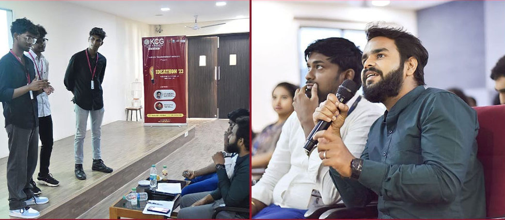 Ideathon ’23, an innovation challenge and workshop, was held on July 15, 2023. The jury panel, consisting of Dr. M. Vignesh Kumar, Head of the Project Development Cell and Assistant Professor in the Department of Mechanical Engineering, and KCG Tech alumnus Mr. S. Bala Surya, Founder and CEO of Sandbird R&D Pvt. Ltd., evaluated the students’ innovative ideas and solutions. They provided valuable guidance on improving and optimizing these projects. The participating teams gained significant insights into turning their ideas into viable products.