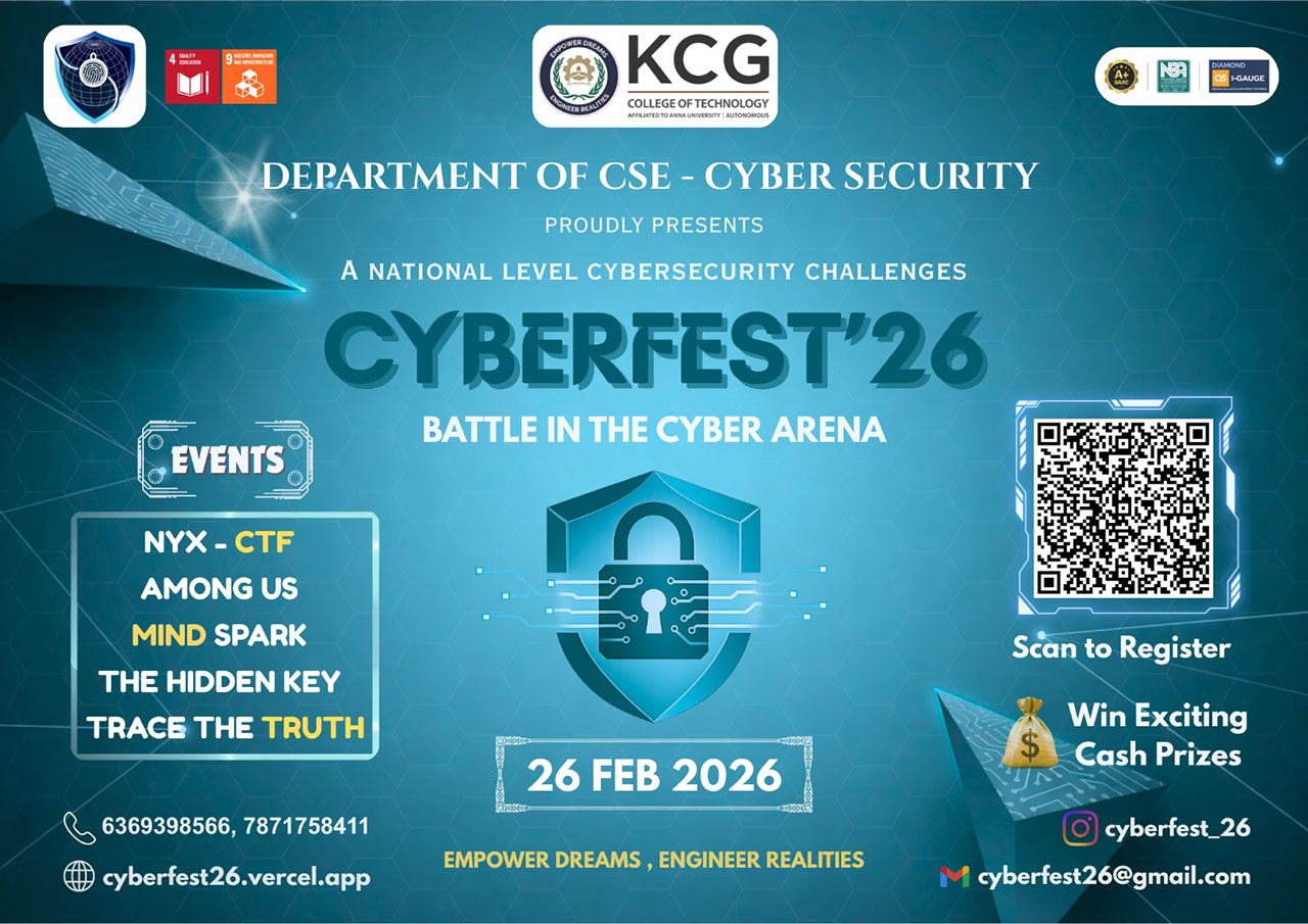 February 26 CYBERFEST’26 Mother Teresa Block First Floor Click here for Invitation Competitions: ⚡ NXY-CTF Capture The Flag (CTF) ⚡ AMONG US - Red Vs Blue for security ⚡ The Hidden Key - Cyber treasure hunt ⚡ Trace […]