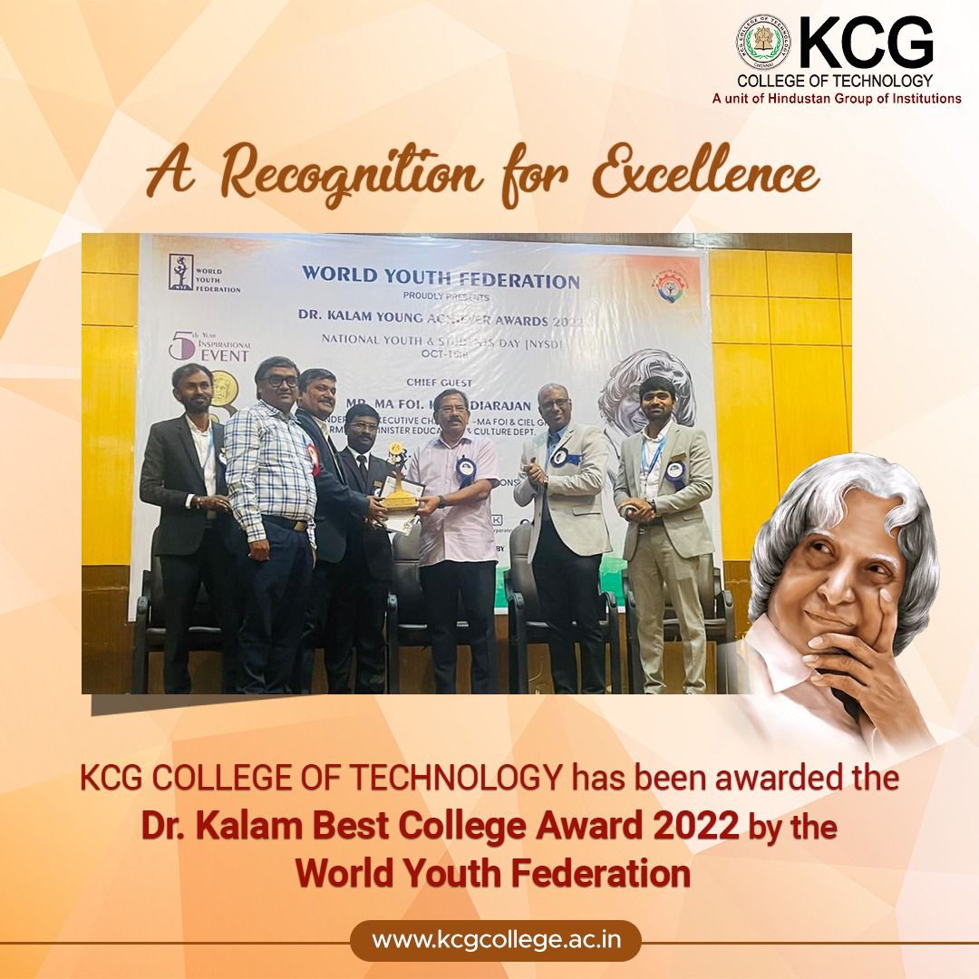 Dr. Kalam Best College Award 2022 by the World Youth Federation