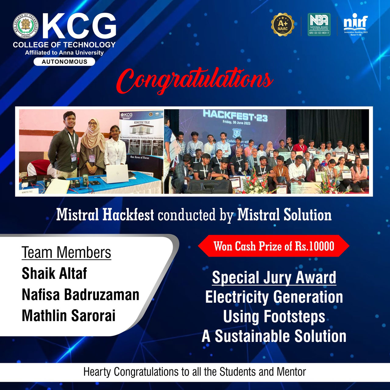 Special Jury Award – Mistral Hackfest conducted by Mistral Solution