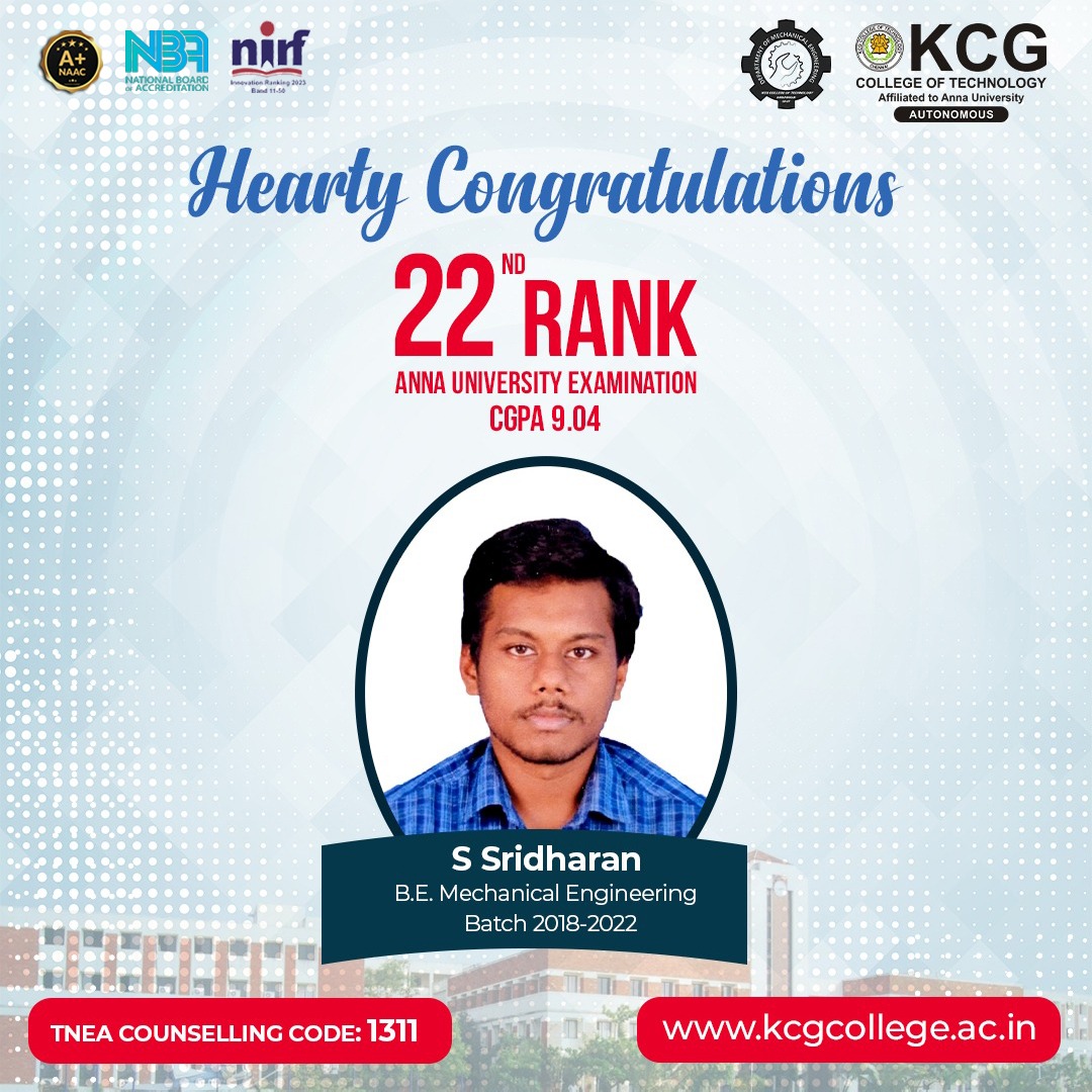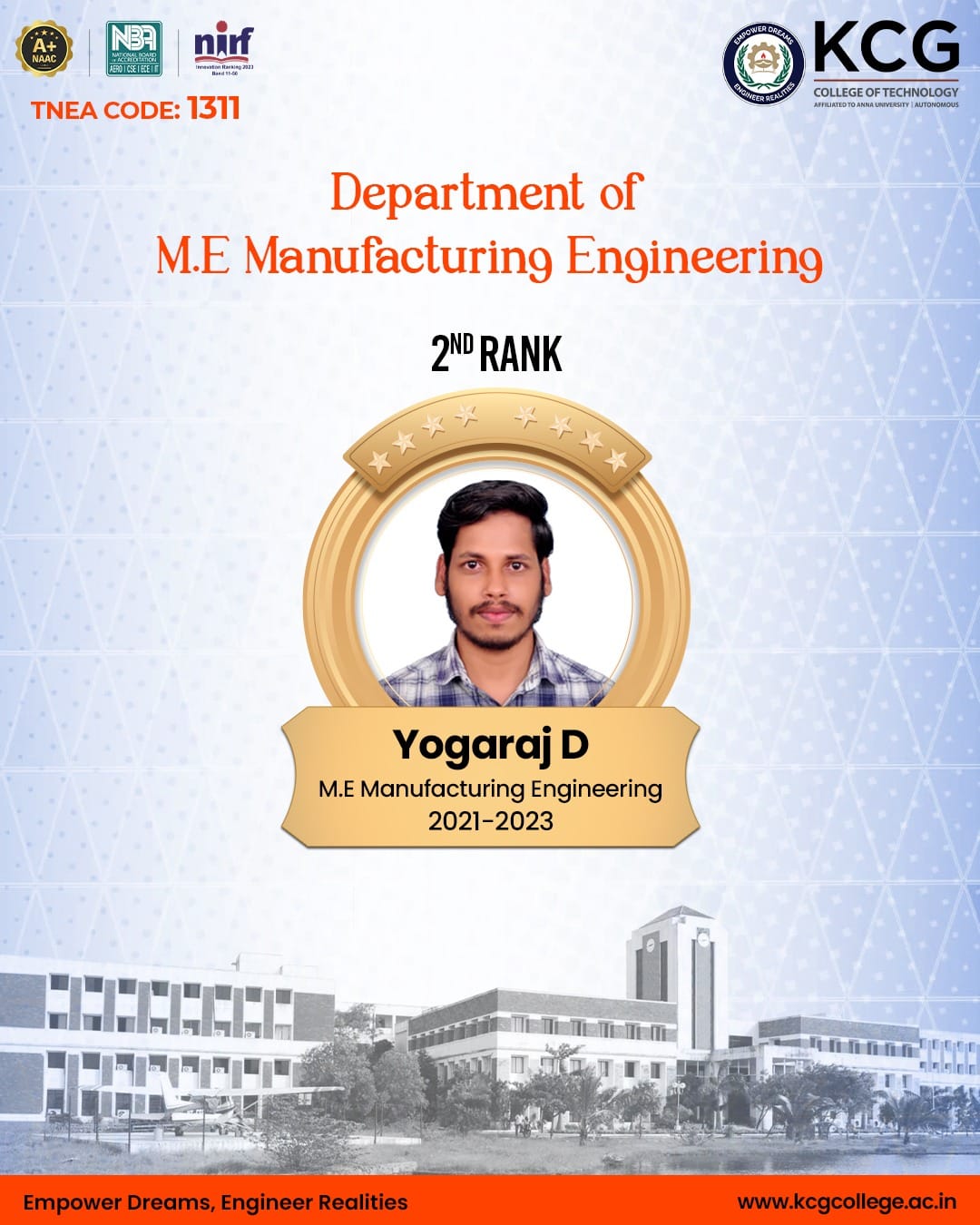M.E Manufacturing Engineering – Anna University Ranking April May 2023