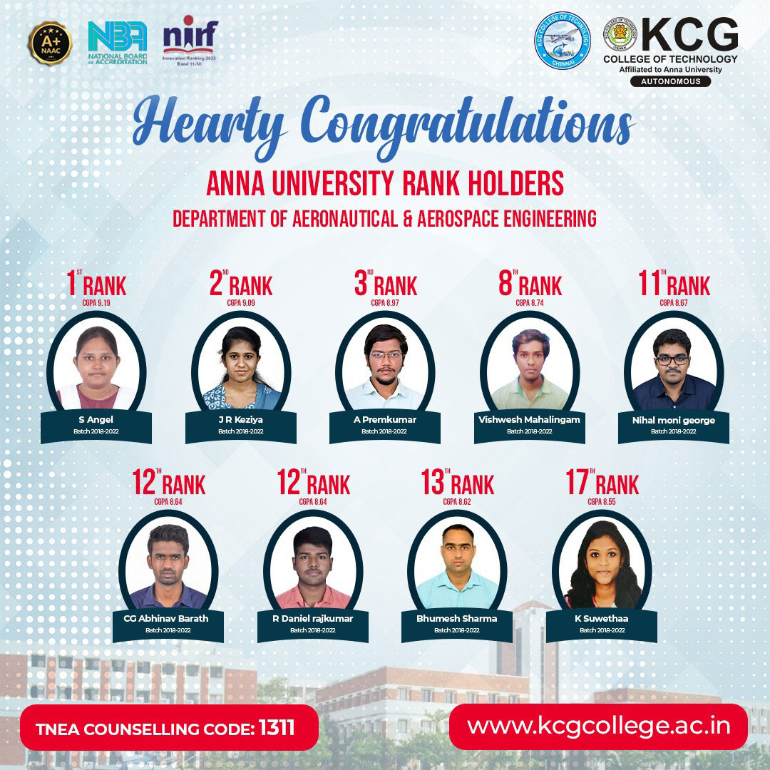 Aeronautical Engineering – Anna University Ranking April May 2023