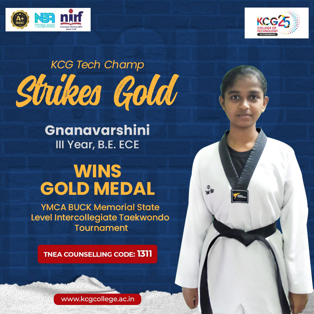 Gold Medal – YMCA BUCK Memeorial State Level Intercollegiate Taekwondo Tournament