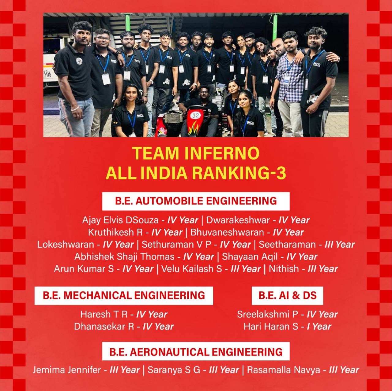Team Inferno – All India Ranking 3 – First Place – FMAE
