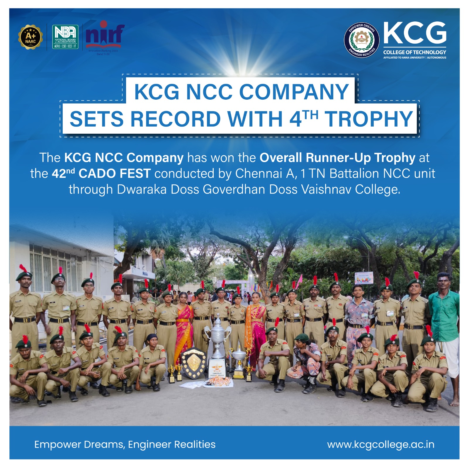 Overall Runner up Trophy – CADO FEST – KCG NCC Company