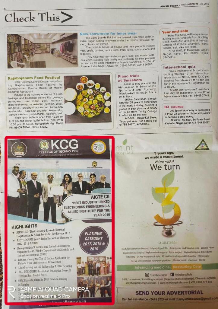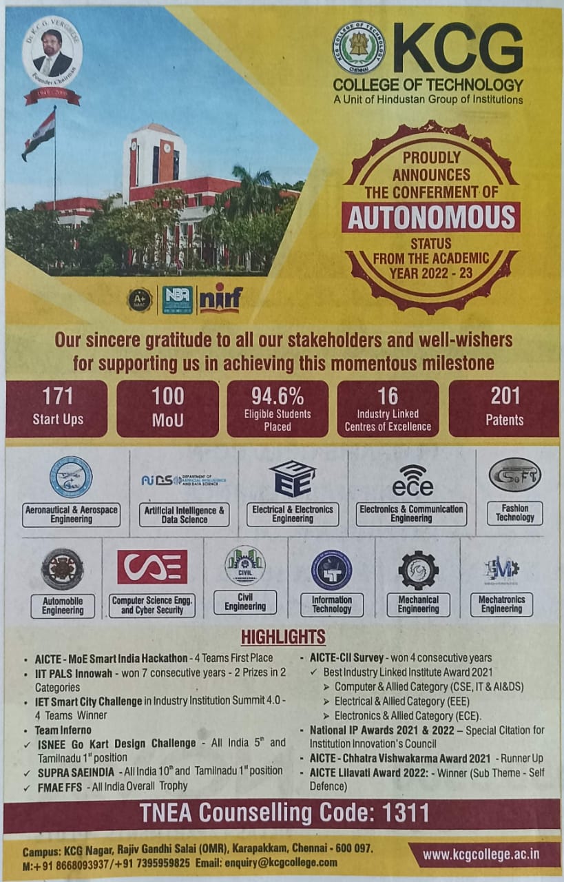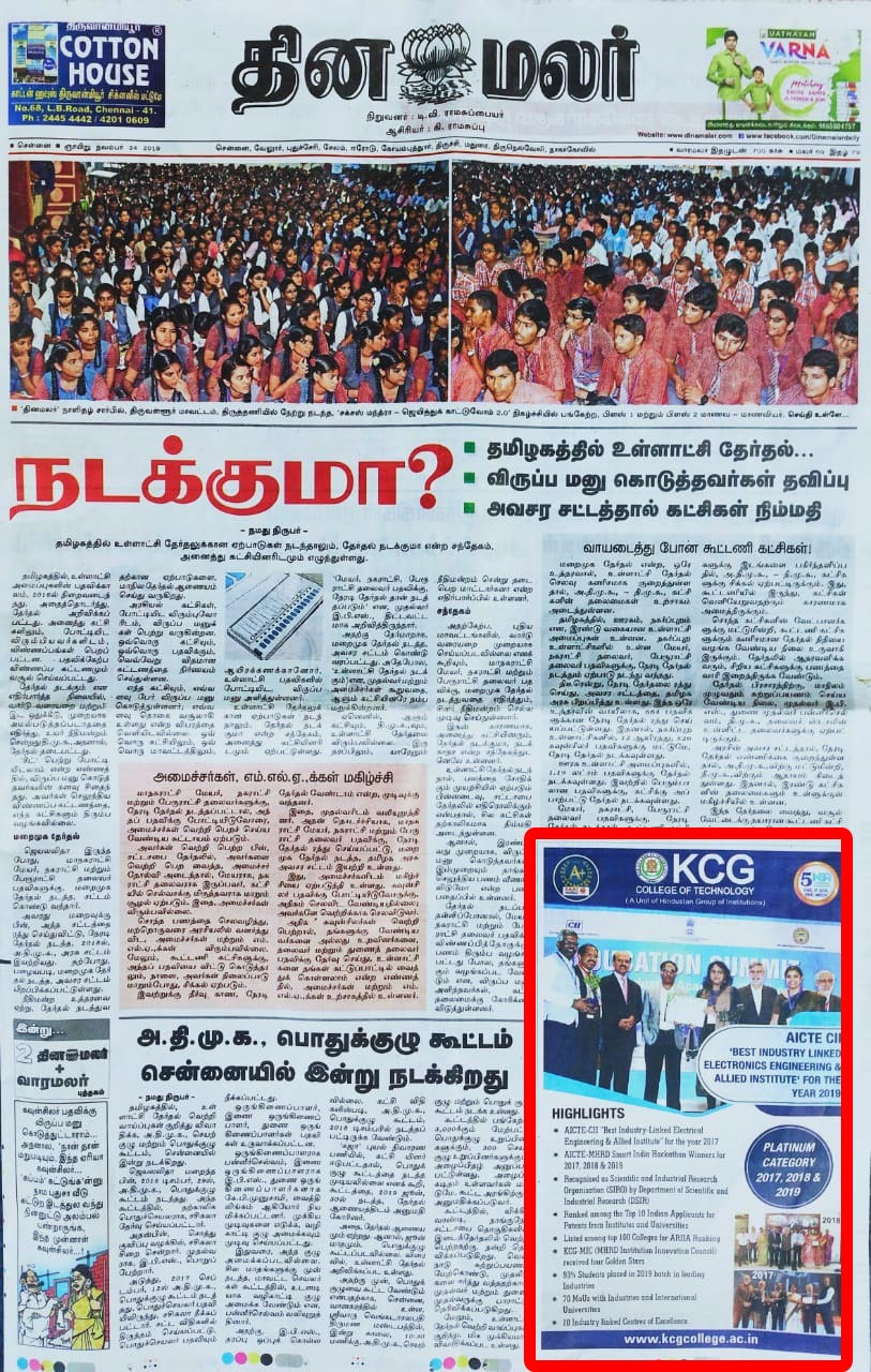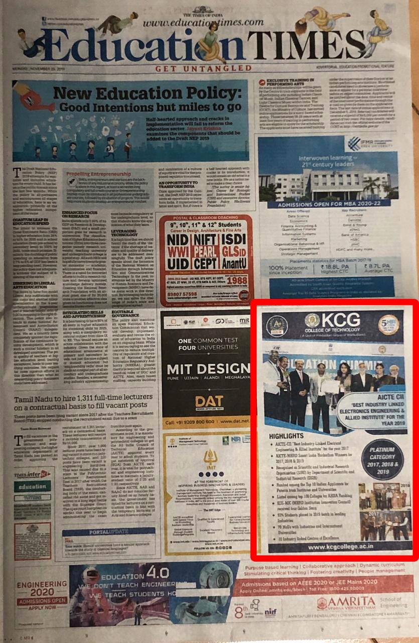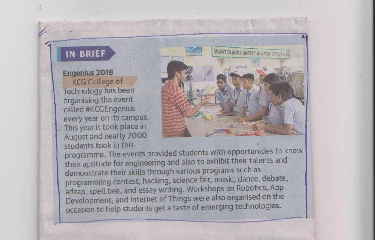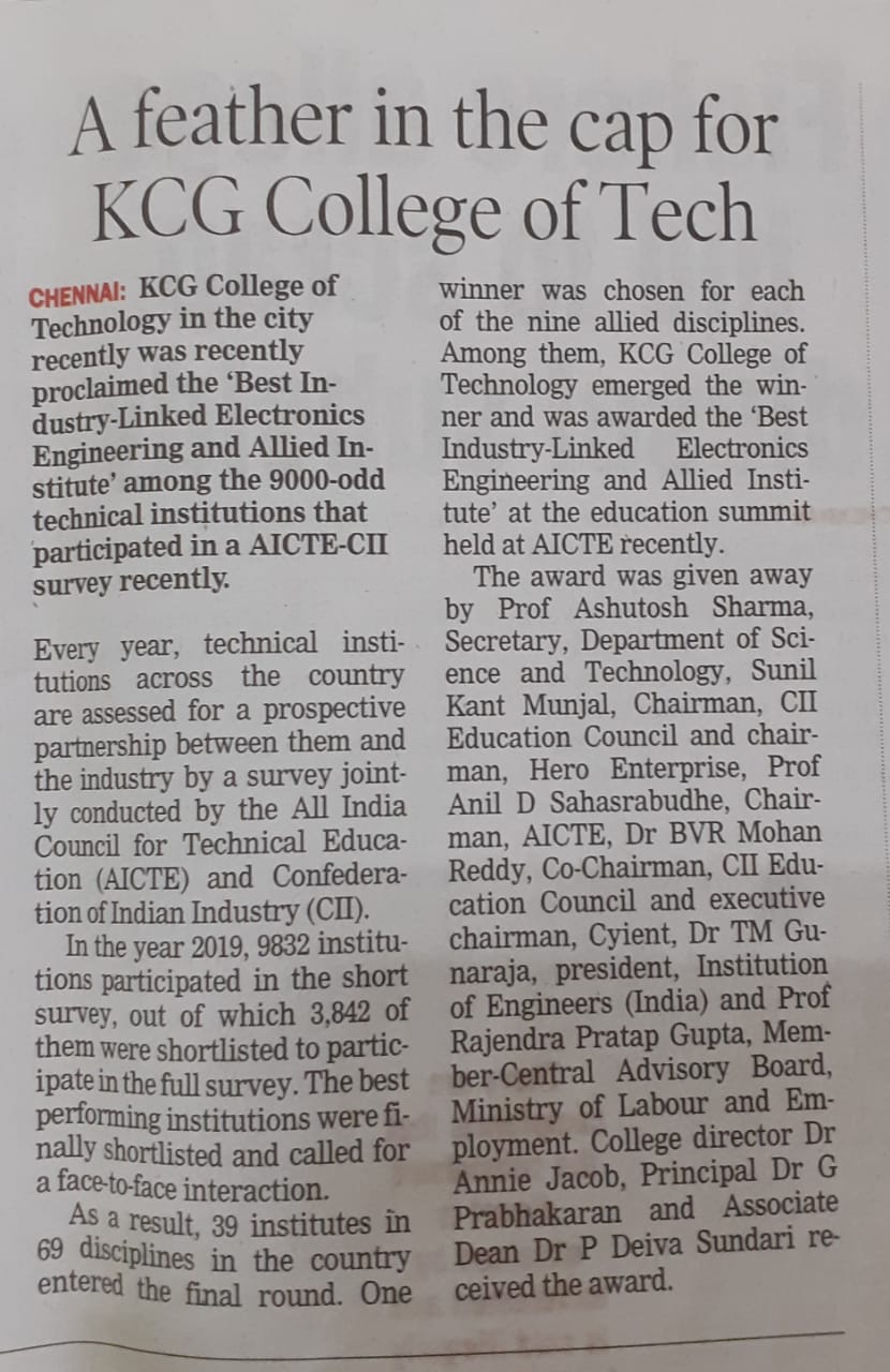 News : KCG College of Technology– Ensuring a Unique Educational Experience for every Student