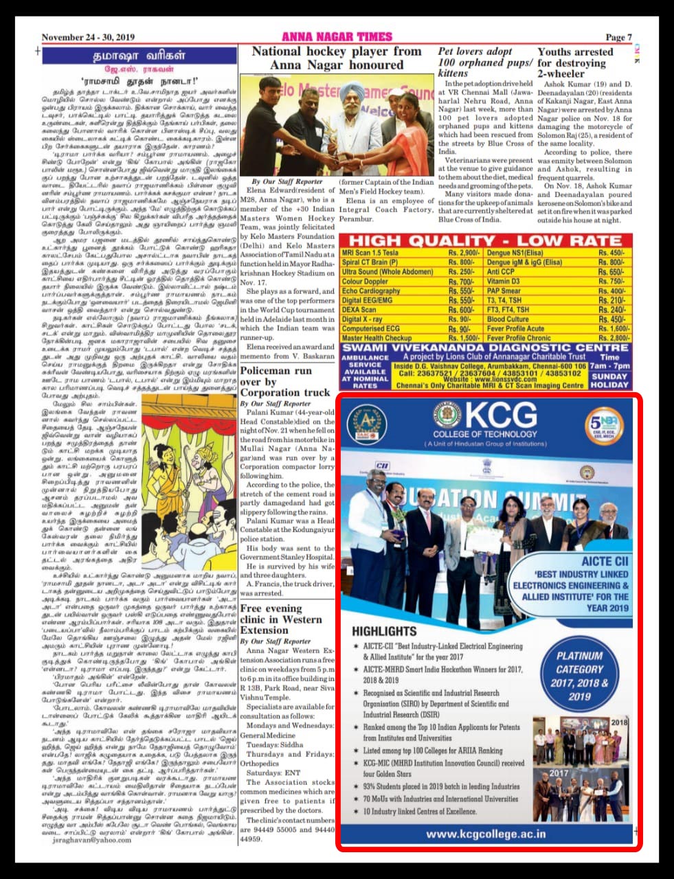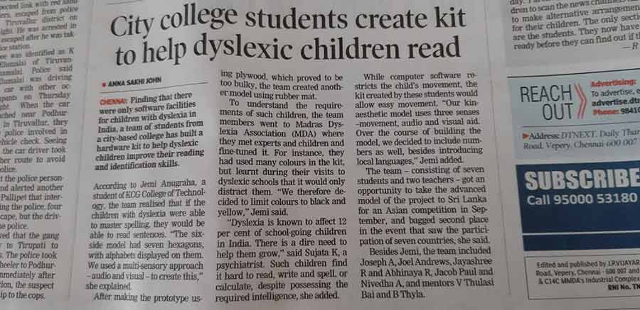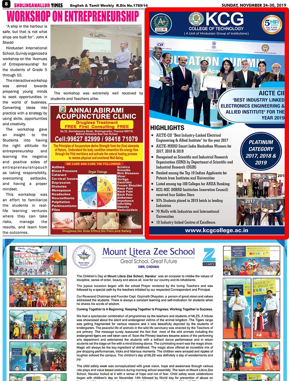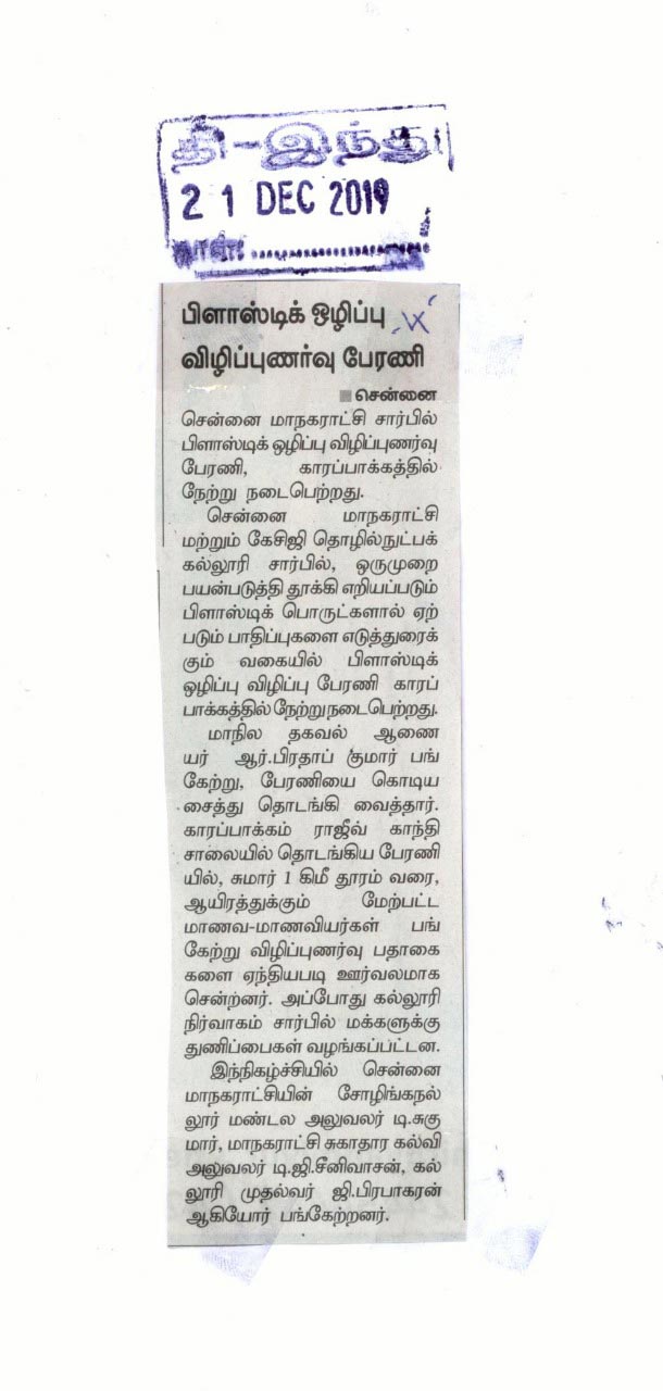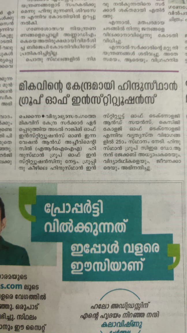 Paper : | Adyar Times | Adyar Times ECR-OMR | Alwarpet Times | Anna Nagar Times | Dina Malar | Malayalam Manorama | Sholinganallur Times | Times of India Education-Times | DT Next | The Hindu