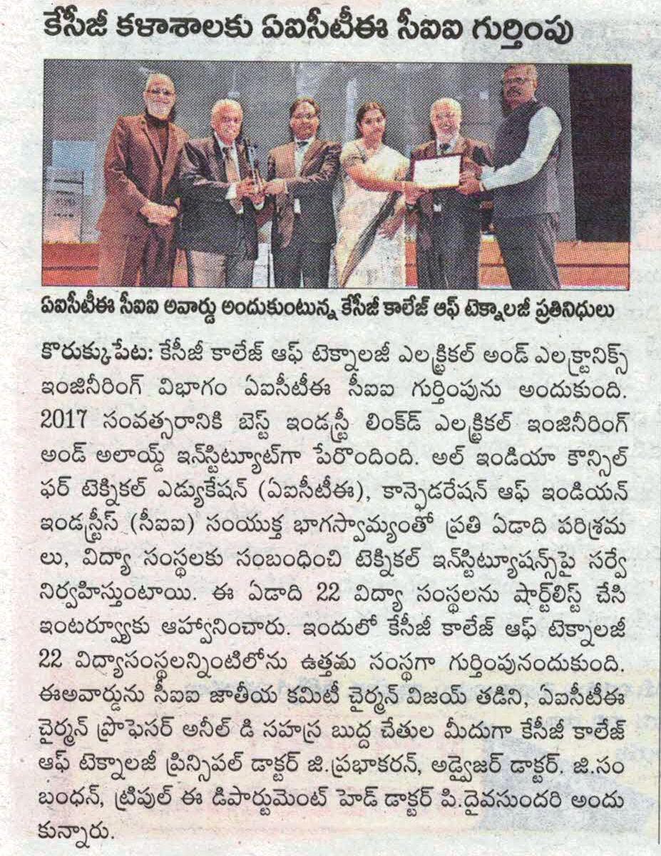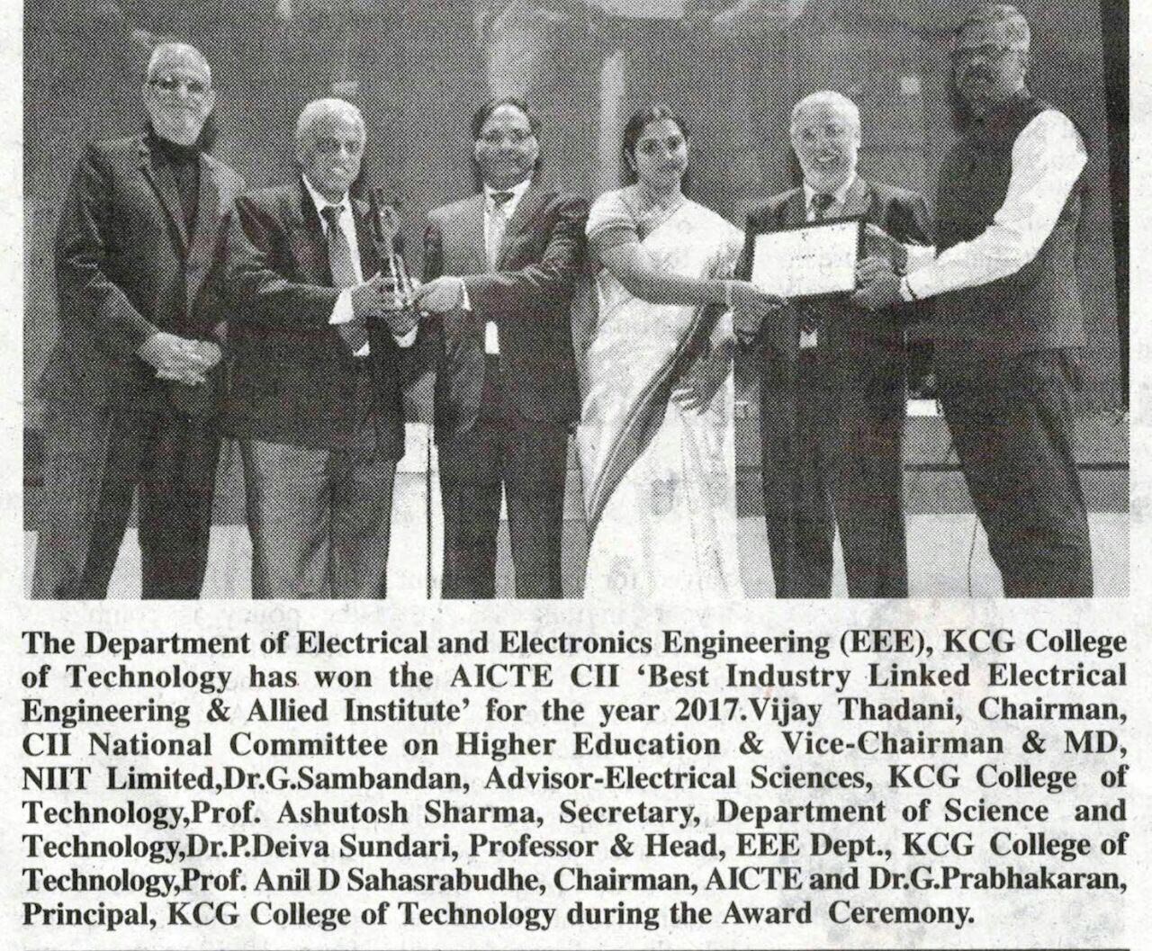 News : AICTE-CII Best Industry Linked Electronics Engineering & Allied Institute – 2019