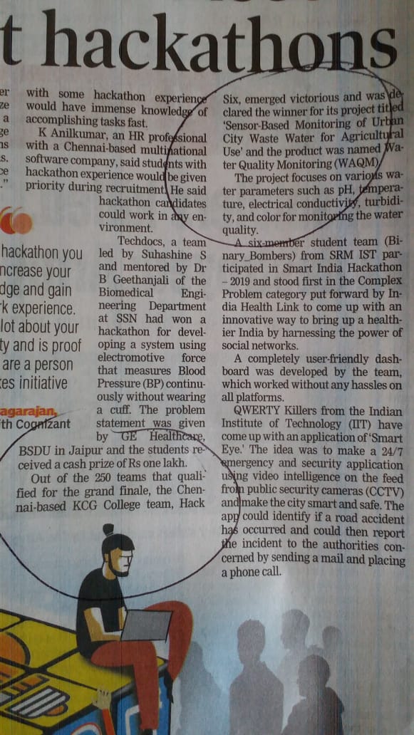 News : KCG Won Smart India Hackathon 2019