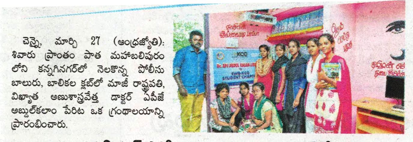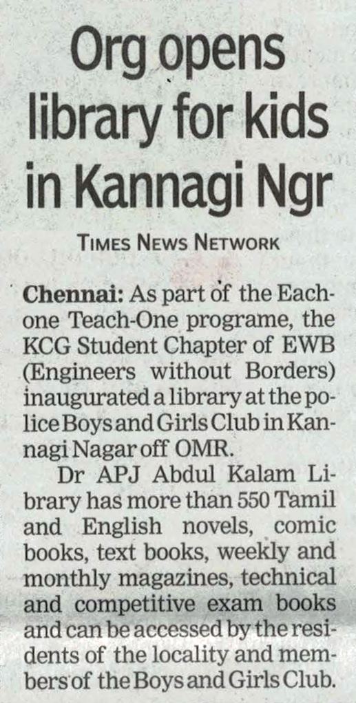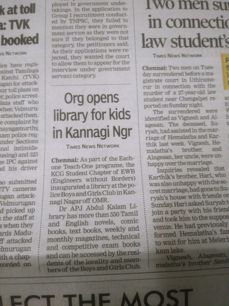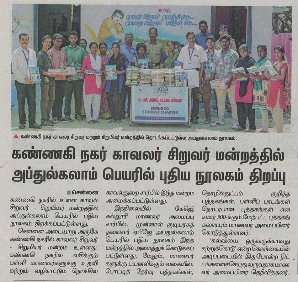 News : KCG Inaugurated Library in Kannagi Nagar