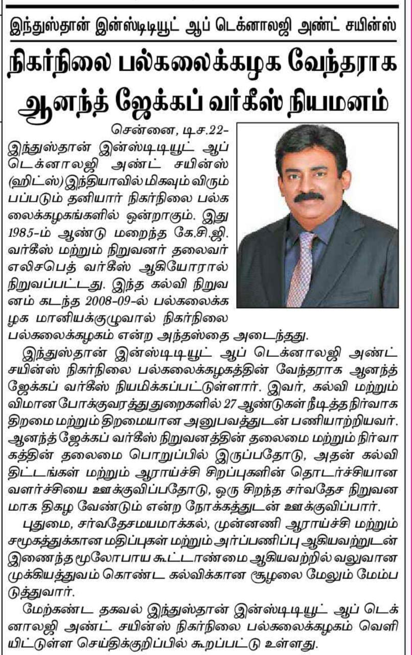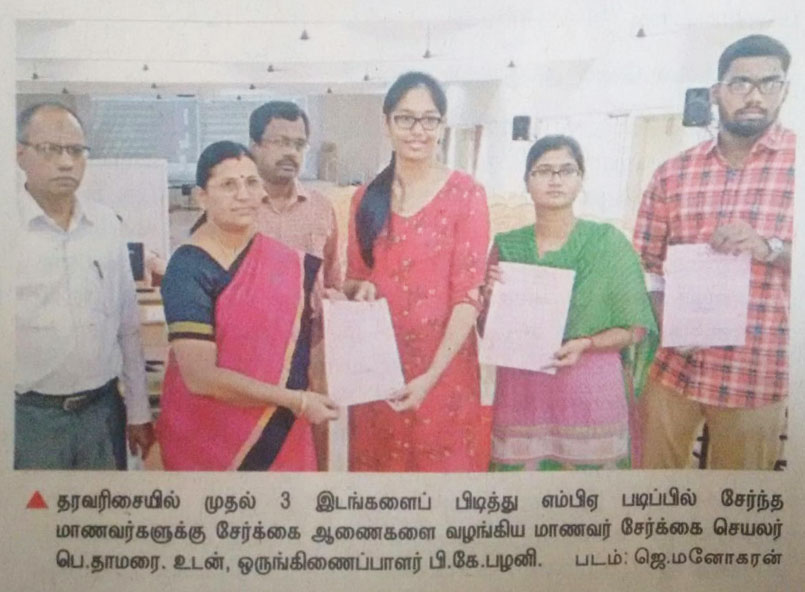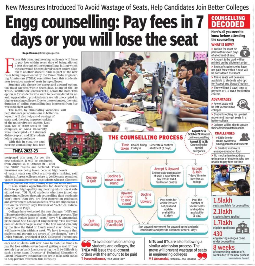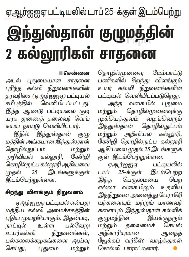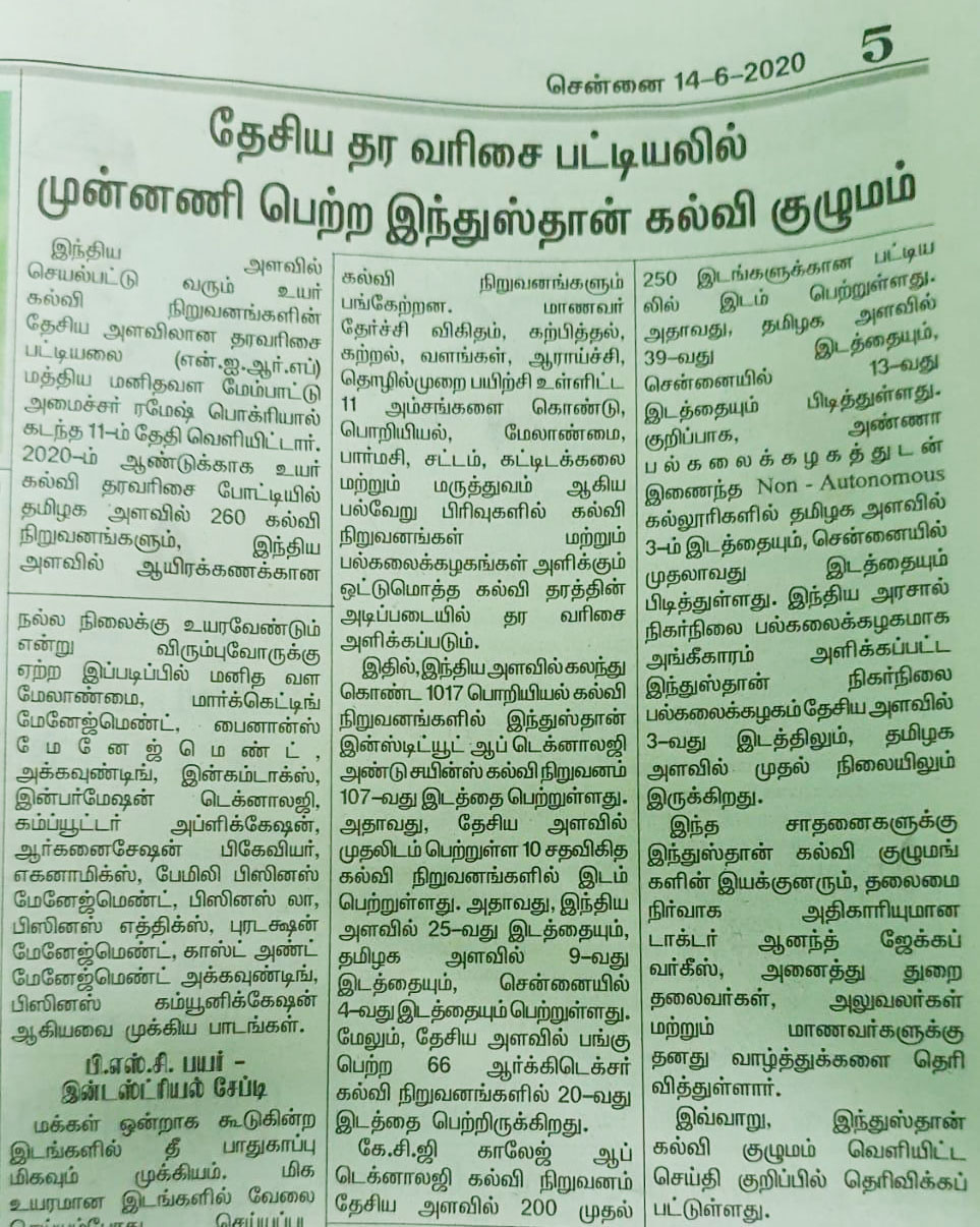 Paper : | Business Standard | Careers 360 | DhinaMalar | DtNext | MHRD – India | The Hindu Tamil | Thinamani | Times of India | Times of India | Web Dunia | Times of India | Vasanth TV