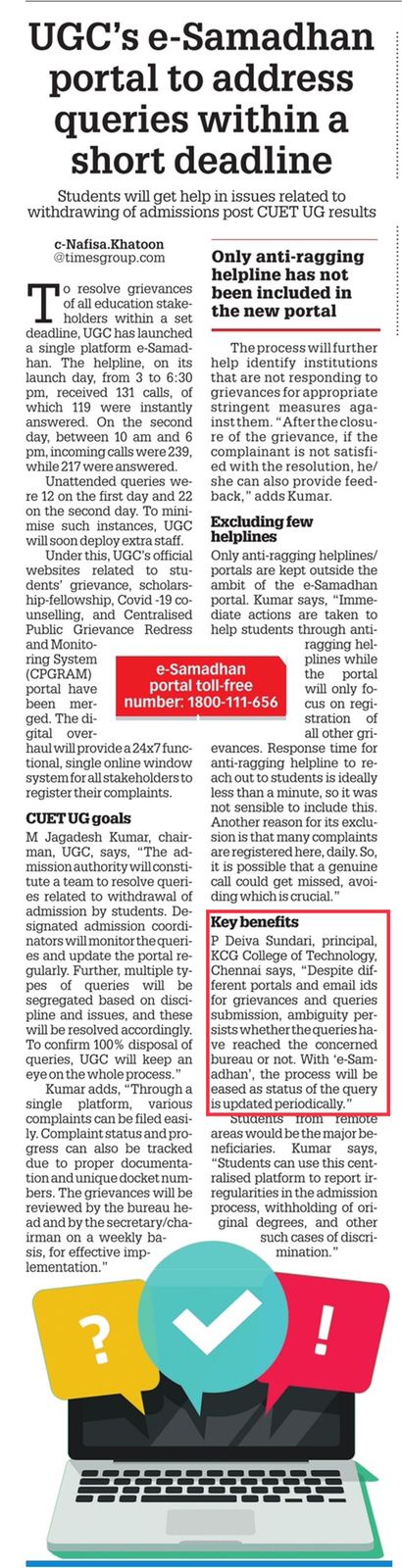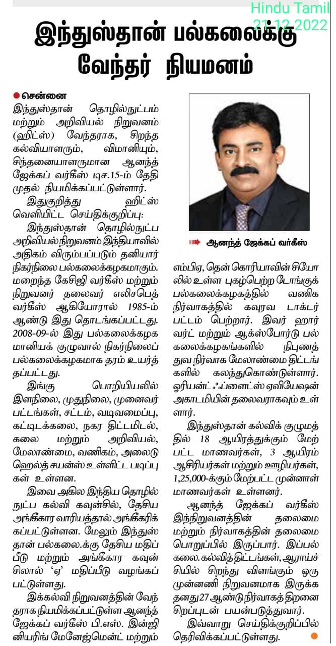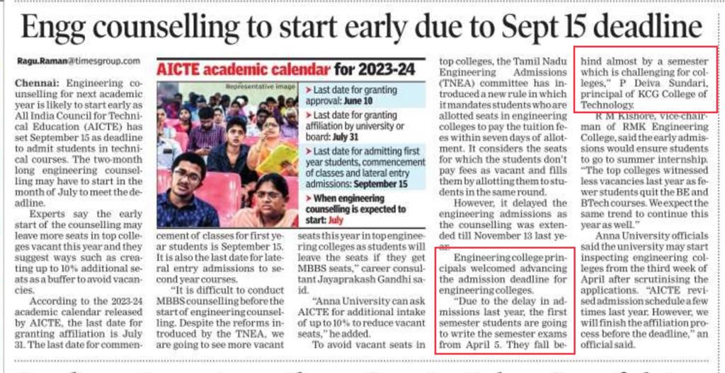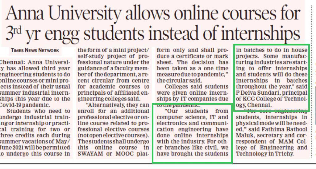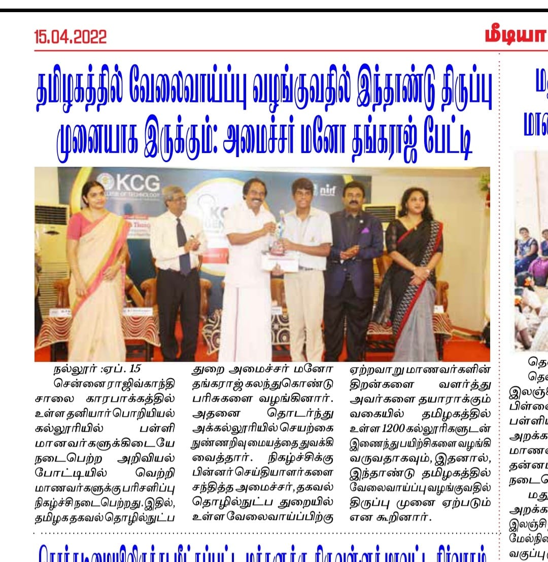 Paper : | Business Standard | Careers 360 | DhinaMalar | DtNext | MHRD – India | The Hindu Tamil | Thinamani | Times of India | Times of India | Web Dunia | Times of India | Vasanth TV