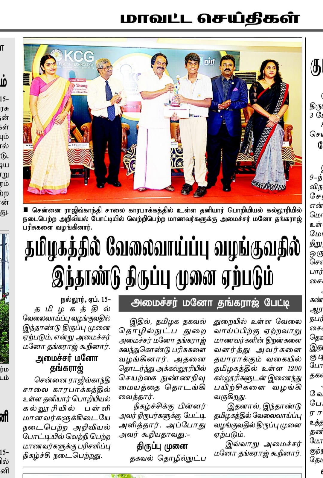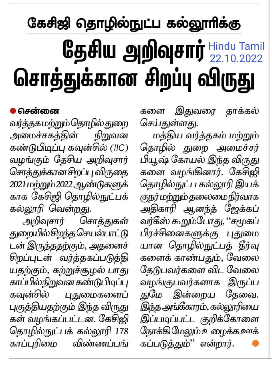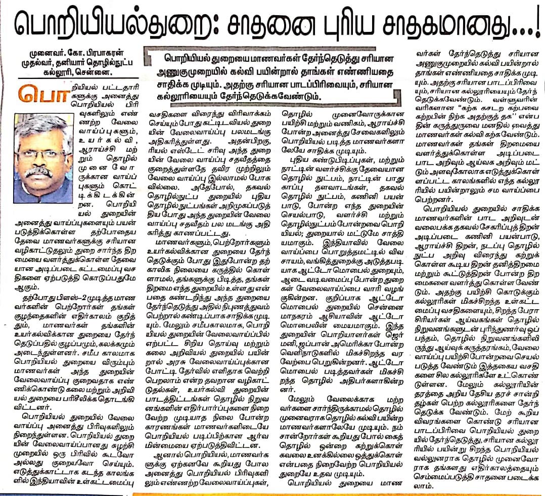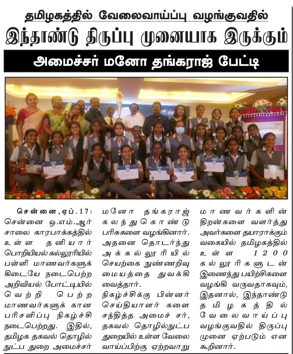 Paper : | Business Standard | Careers 360 | DhinaMalar | DtNext | MHRD – India | The Hindu Tamil | Thinamani | Times of India | Times of India | Web Dunia | Times of India | Vasanth TV