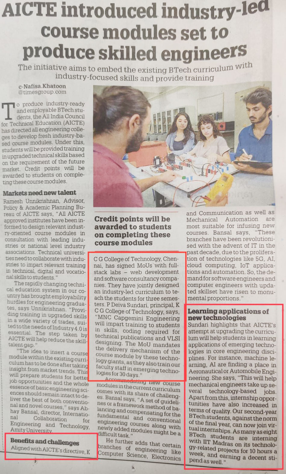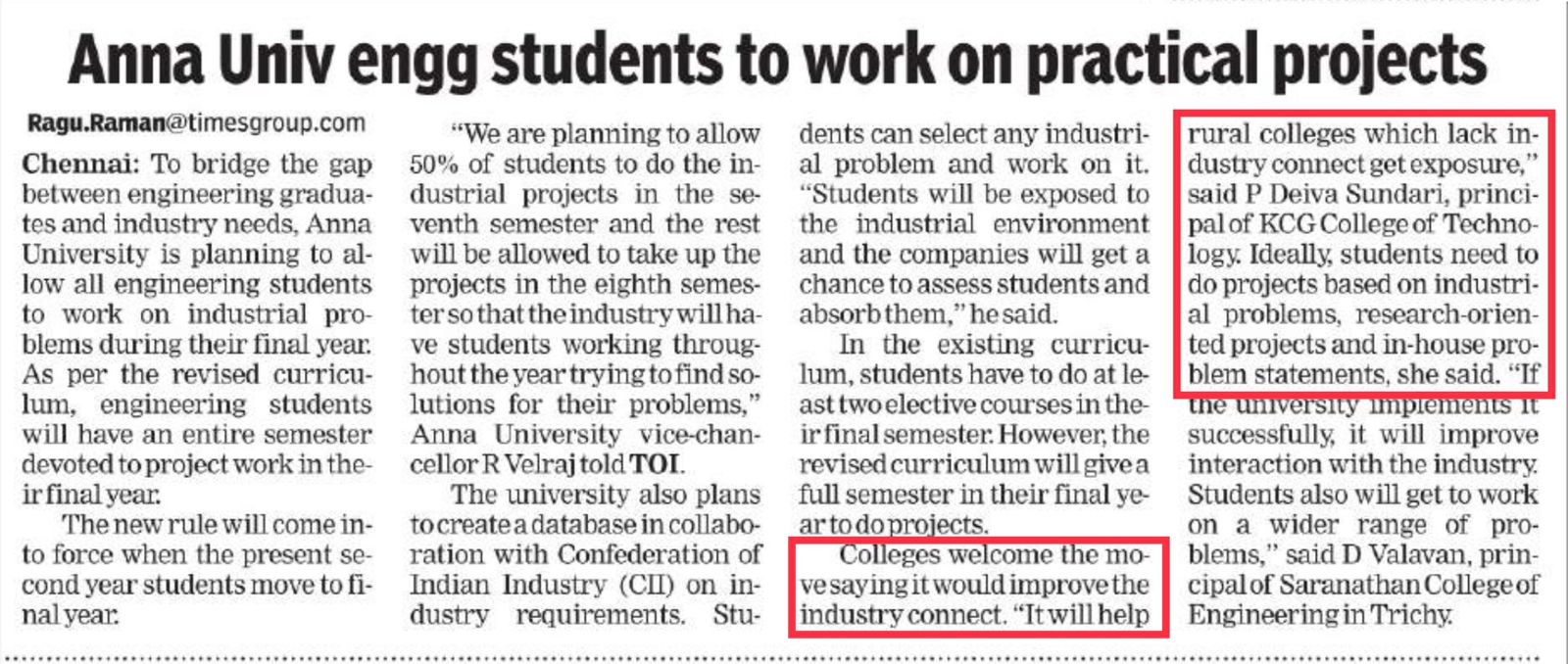 News : Anna University Engg. Students to Work on Practical Projects