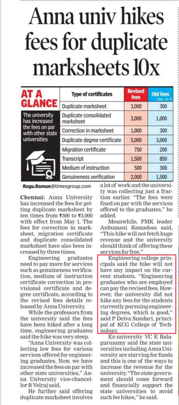 News : Anna University Hikes Fees for Duplicate Marksheets