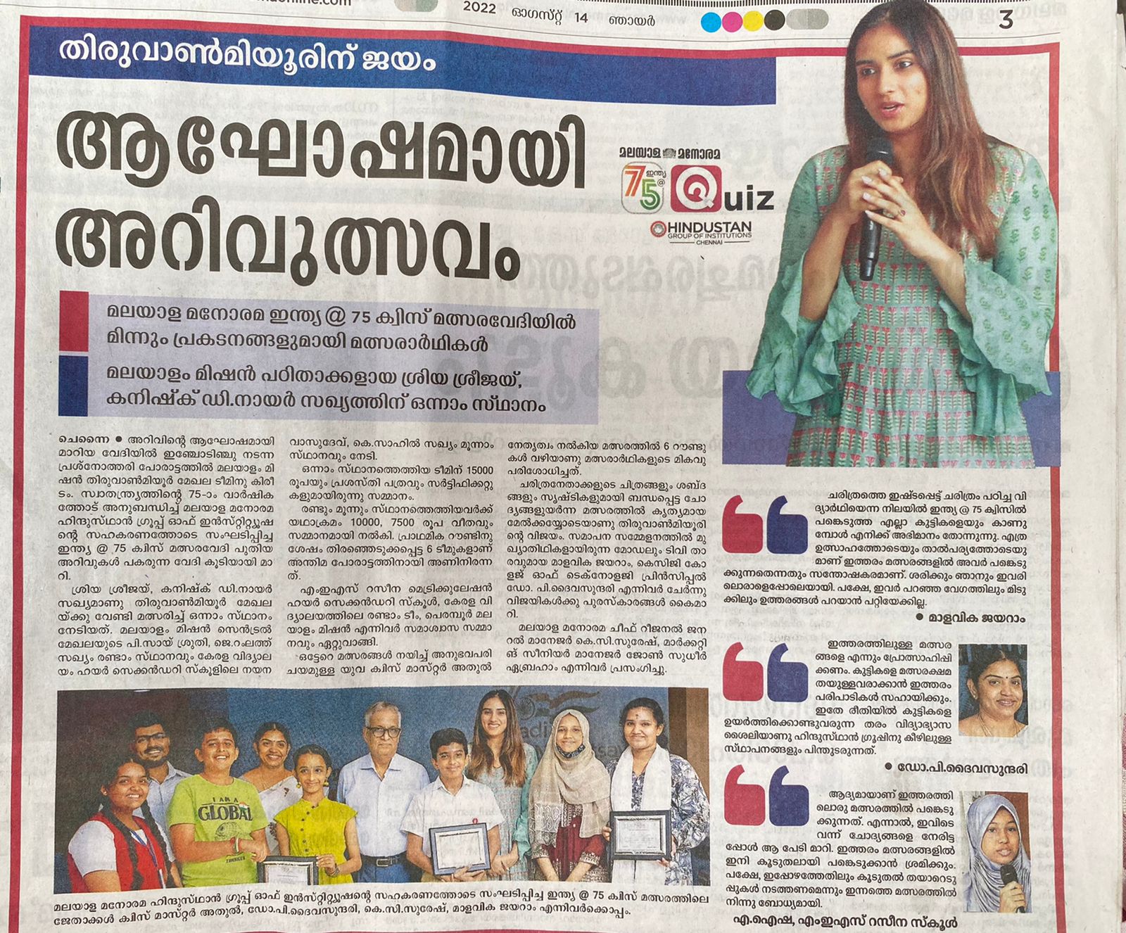News : Malayala Manorama 75 Quiz Coverage