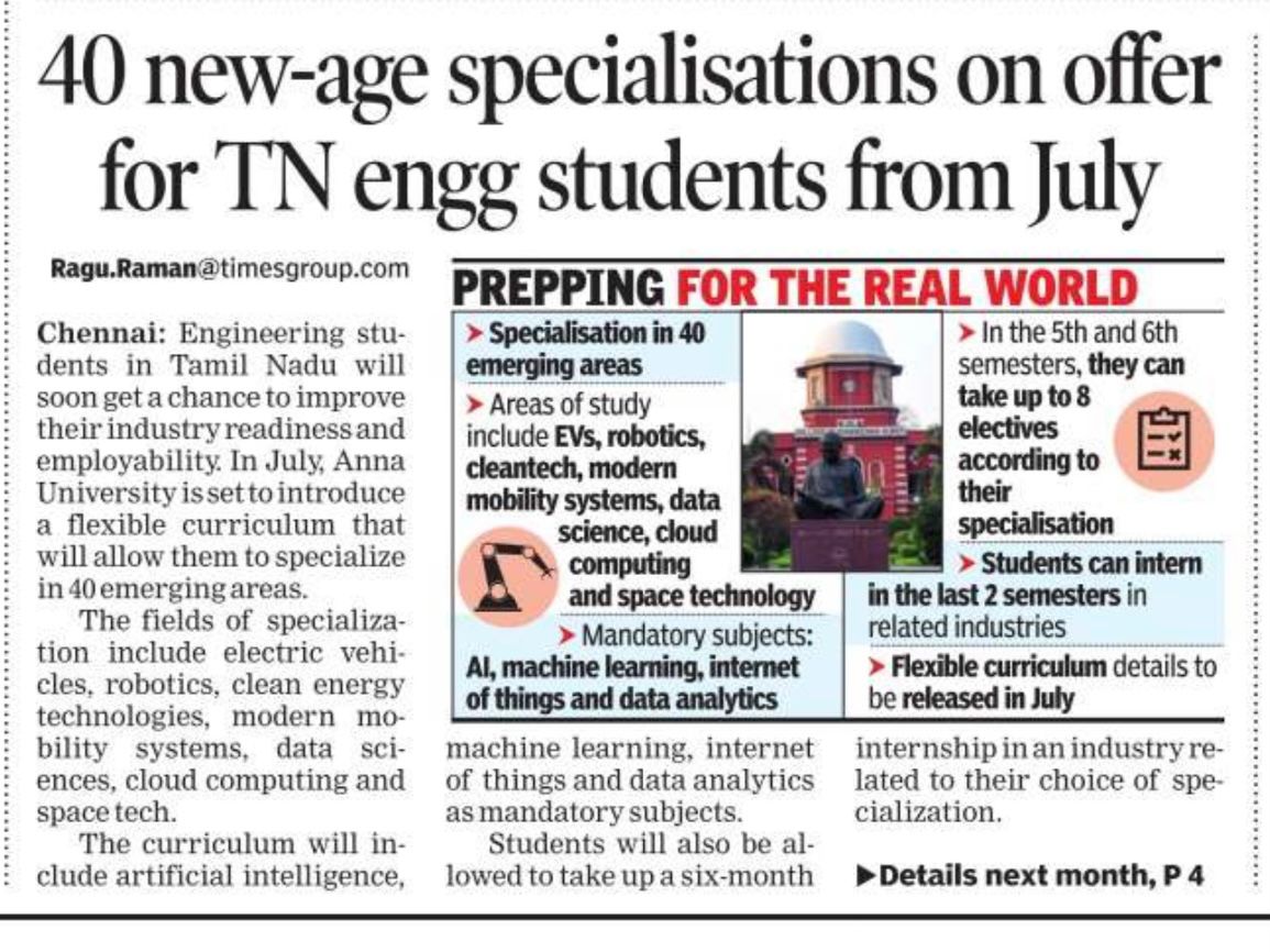 News : 40 new-age specialisations on offer for Tamil Nadu engineering students from July