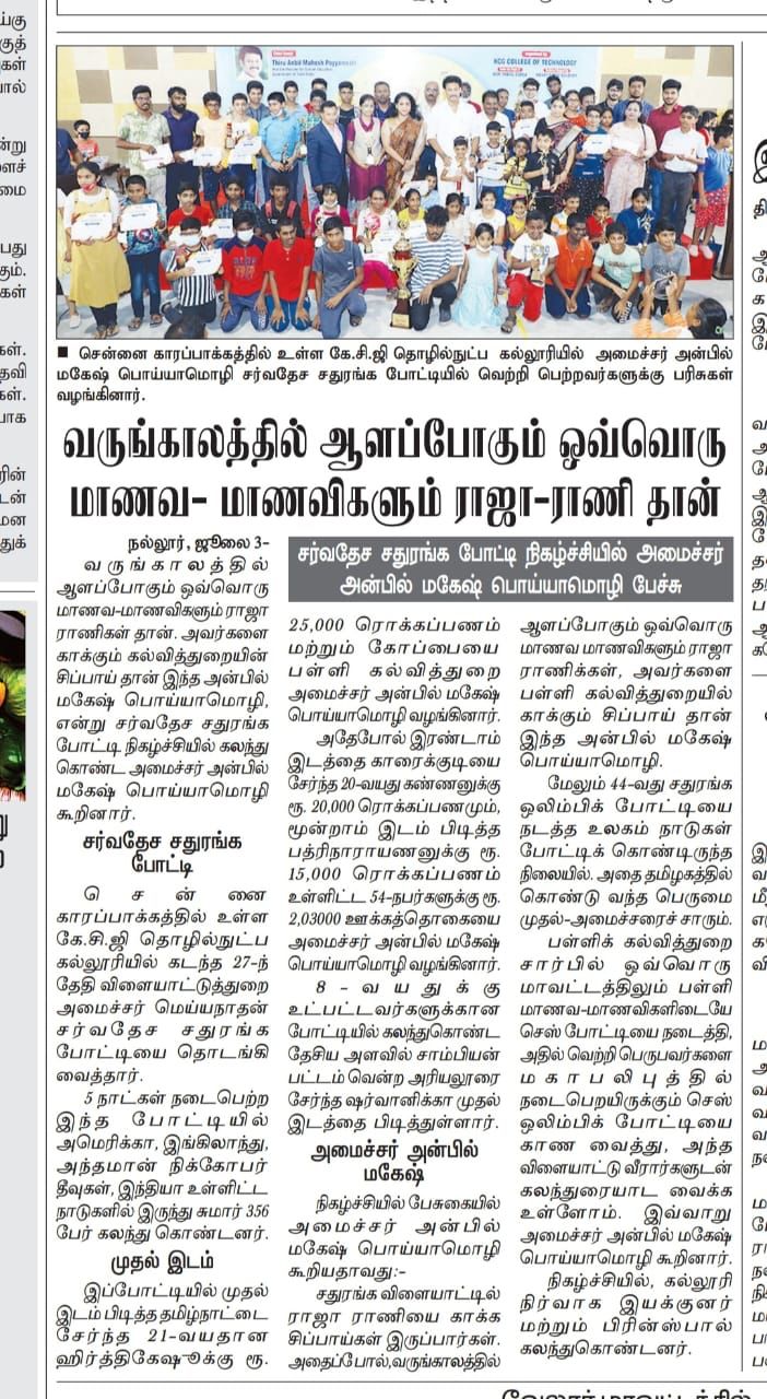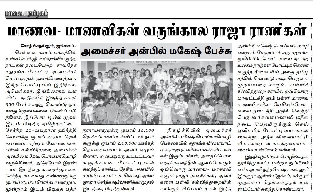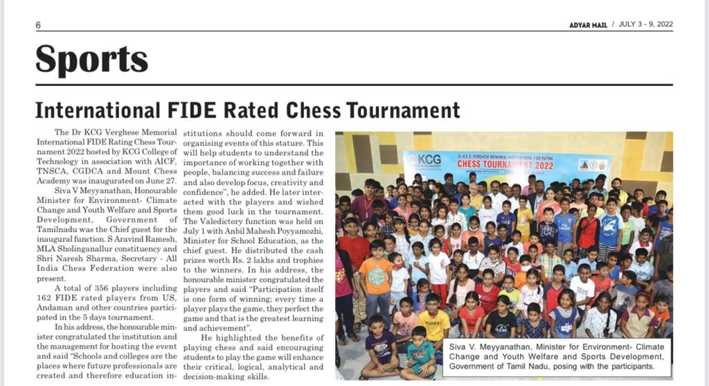 News : Dr. KCG Verghese Memorial International Fide Rating Chess Tournament 2022