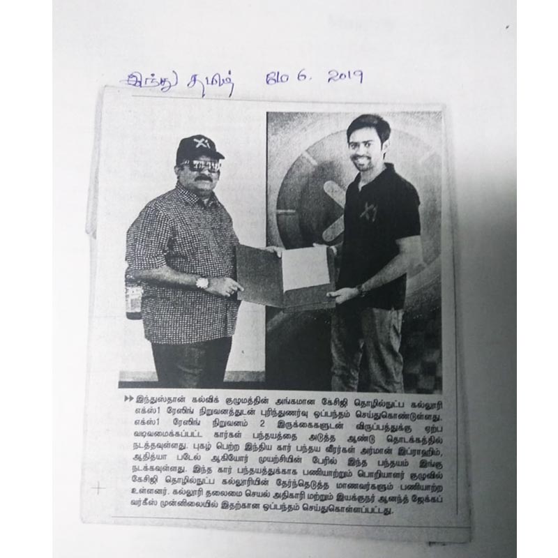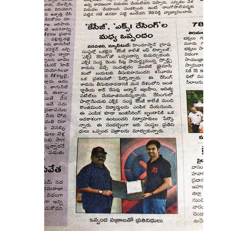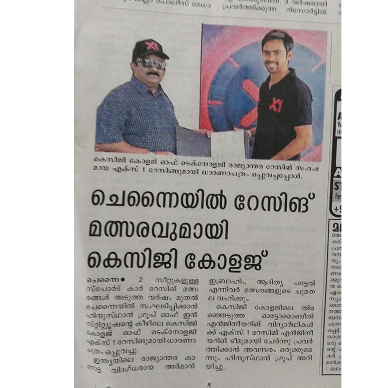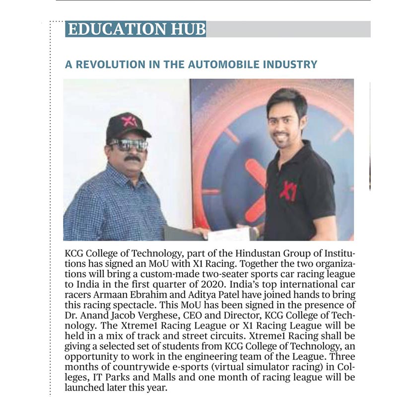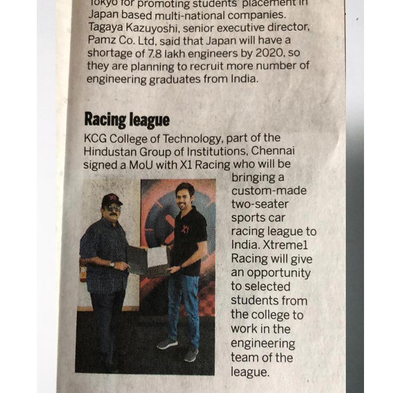 News : KCG College of Technology MoU with X1 racing