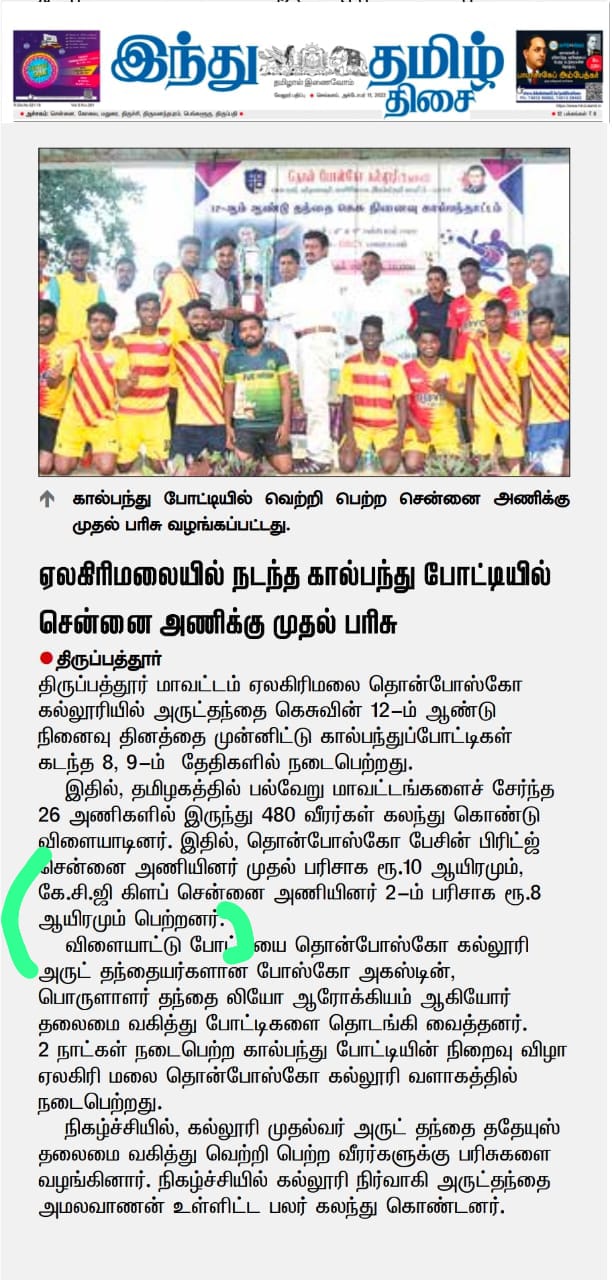 News : Football – Yelagiri Cup