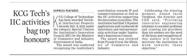 News : KCG Tech’s IIC activities bag top honours
