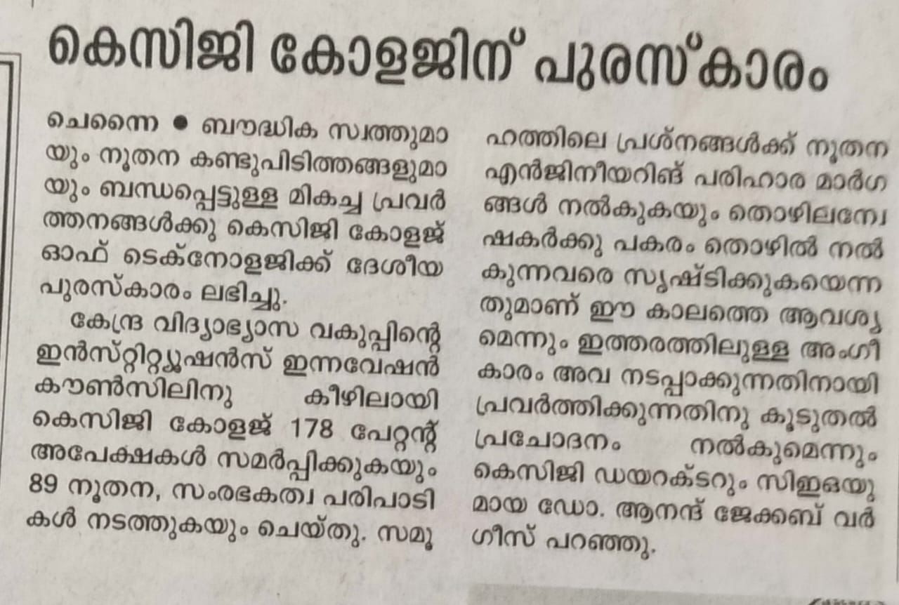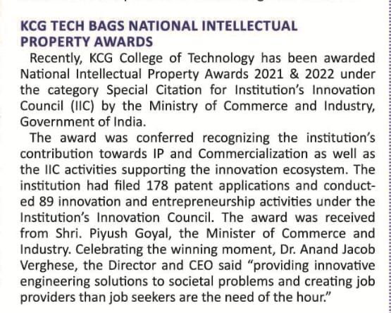 News : KCG TECH BAGS NATIONAL INTELLECTUAL PROPERTY AWARDS