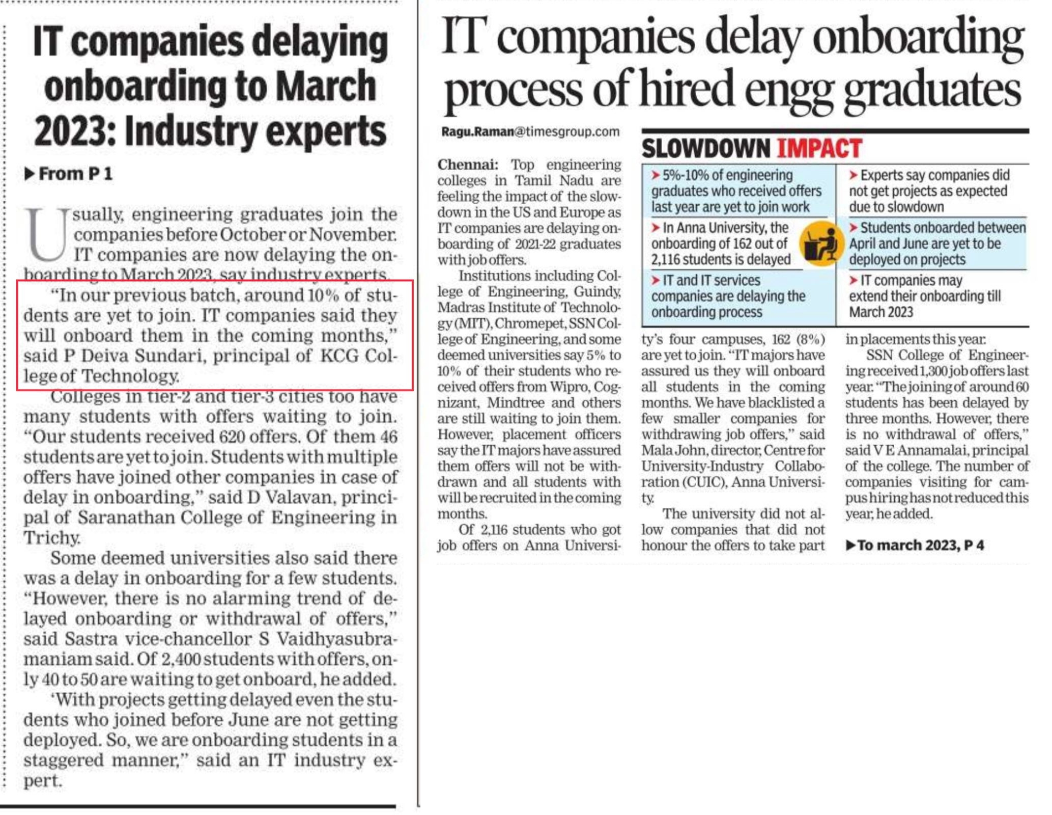 News : IT companies delay onboarding process of hired engineering graduates