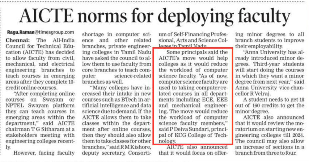News : AICTE norms for deploying faculty