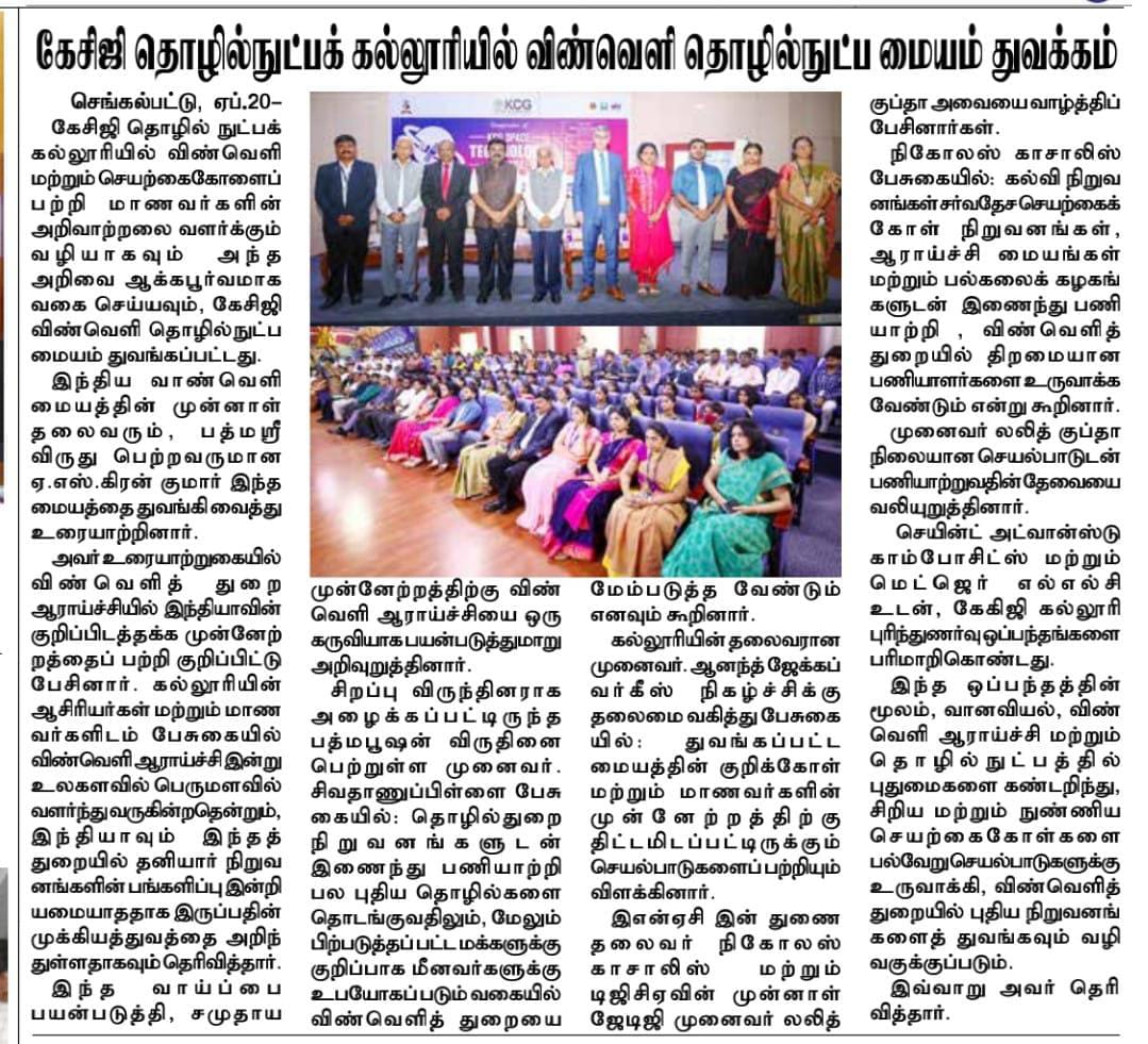 News : KCG Space Technology Centre Inauguration