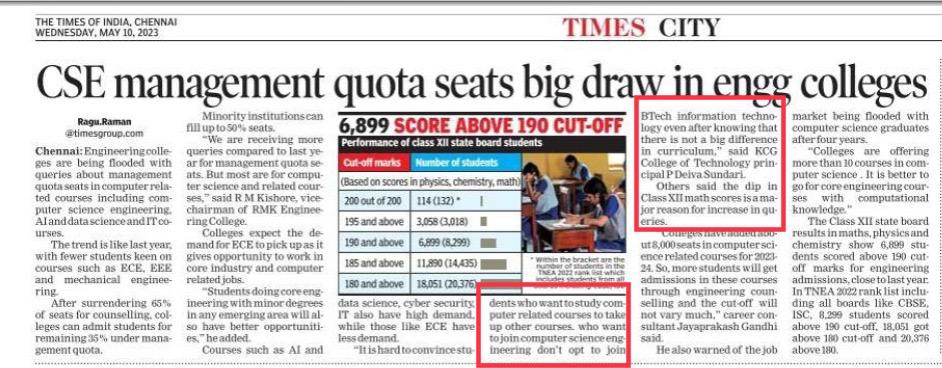 News : CSE management quota seats big draw in engg colleges