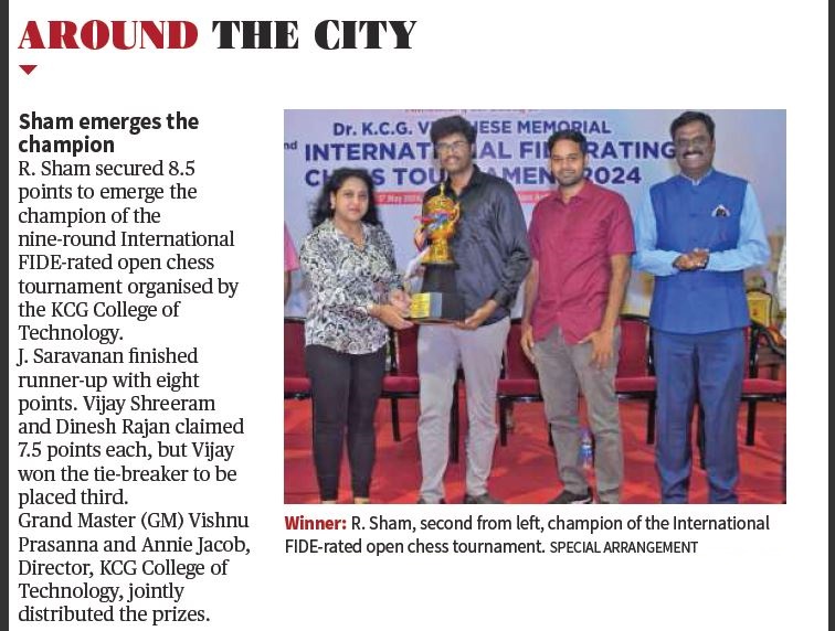 News : Dr.KCG Verghese Memorial 2nd International Open Fide Rating Chess Tournament 2024