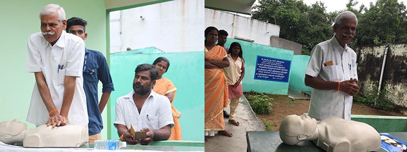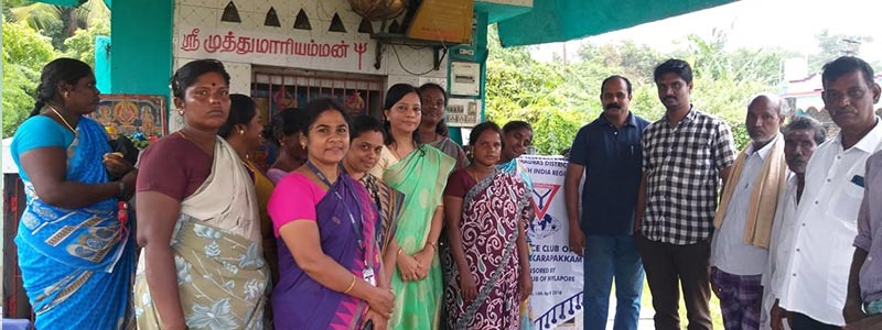 PulavarManickam, District Secretary, Red Cross Society, Kanchipuram District was the resource person to demonstrate the first aid measures for various situations like road accident, heart attack, snake and other insect bites, electric shock, seizures, fire accident etc.,. 70 people from the village and 15 rotaract volunteers participated in the programme.