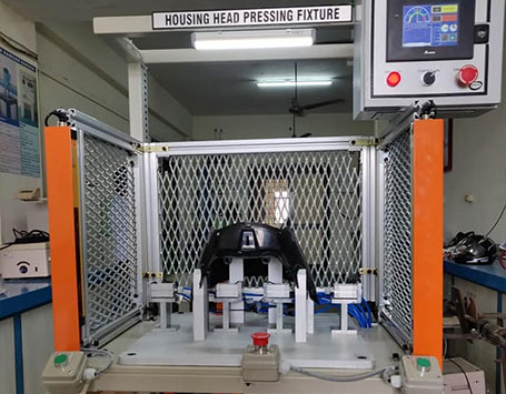 | Poke Yoke system with Barcode automation inspection machine | TVS head lamp housing assy Machine with TVS |