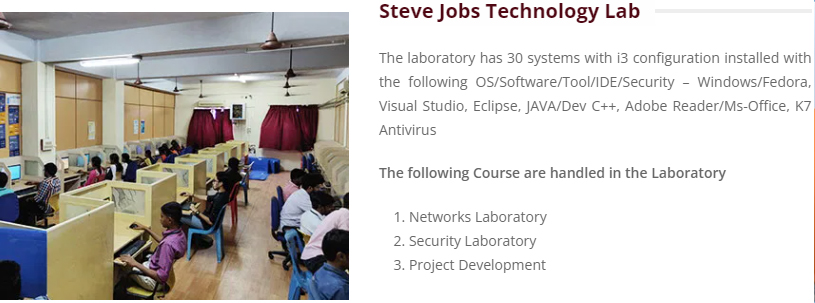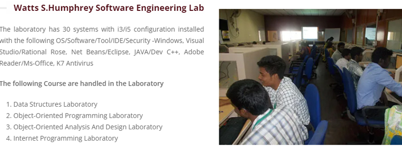 - The department laboratories are interconnected through a well-designed seamless network with a bandwidth speed of 100 Mbps to facilitate students’ access to web resources.