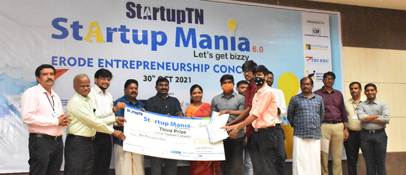 Third year Automobile students Thanuj R has secured third place in startup mania 6.0 and was awarded with a cash prize of Rs.10,000-/.