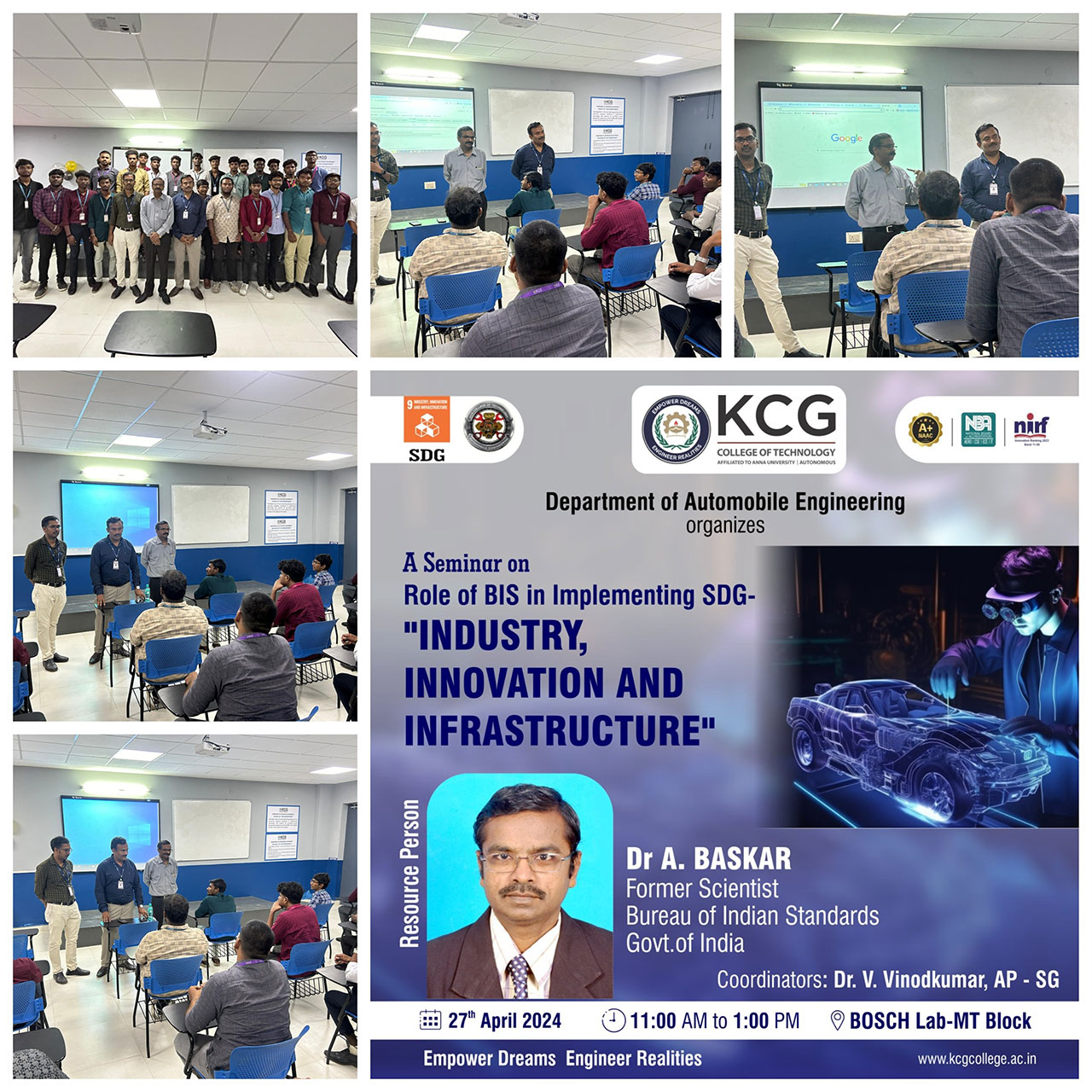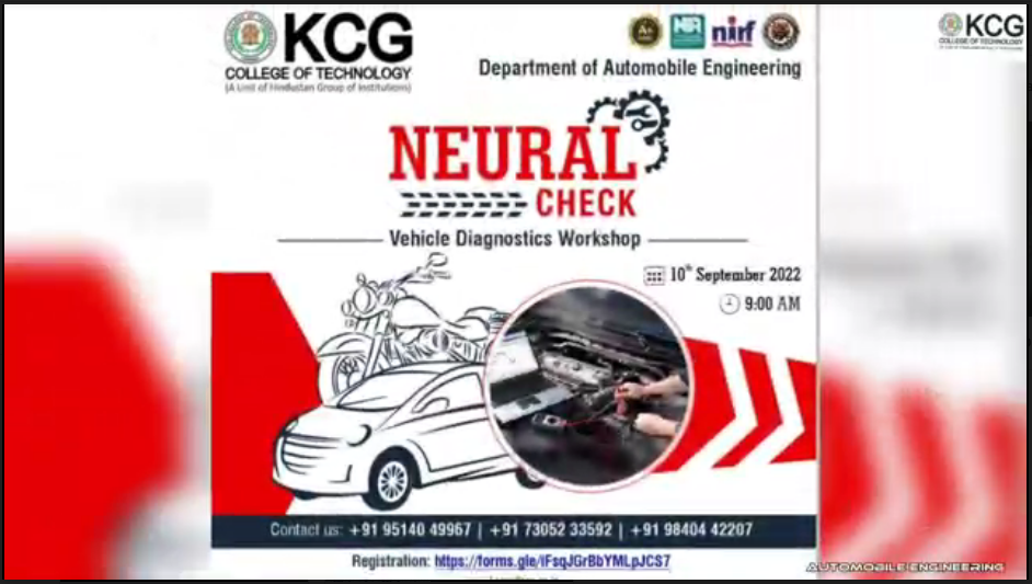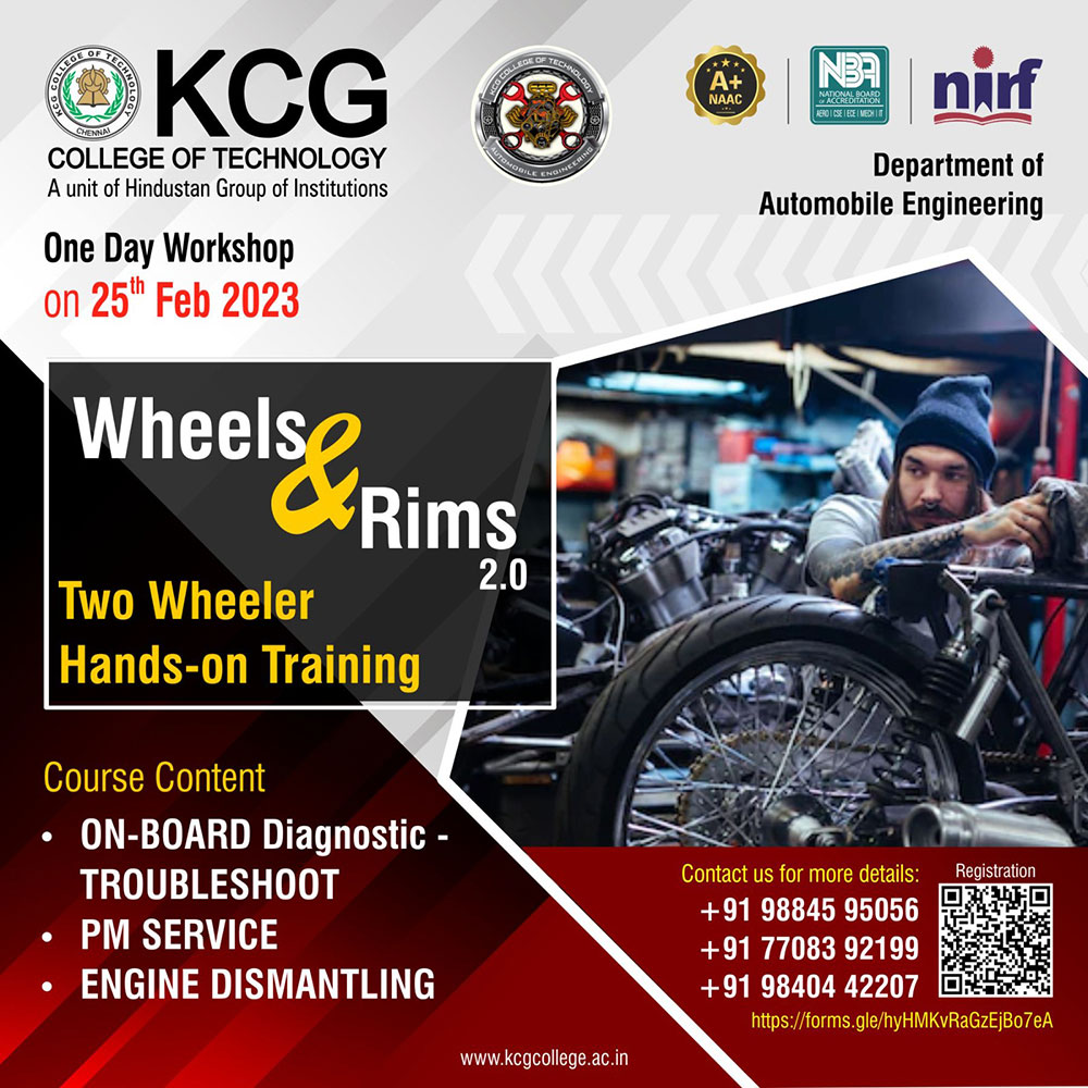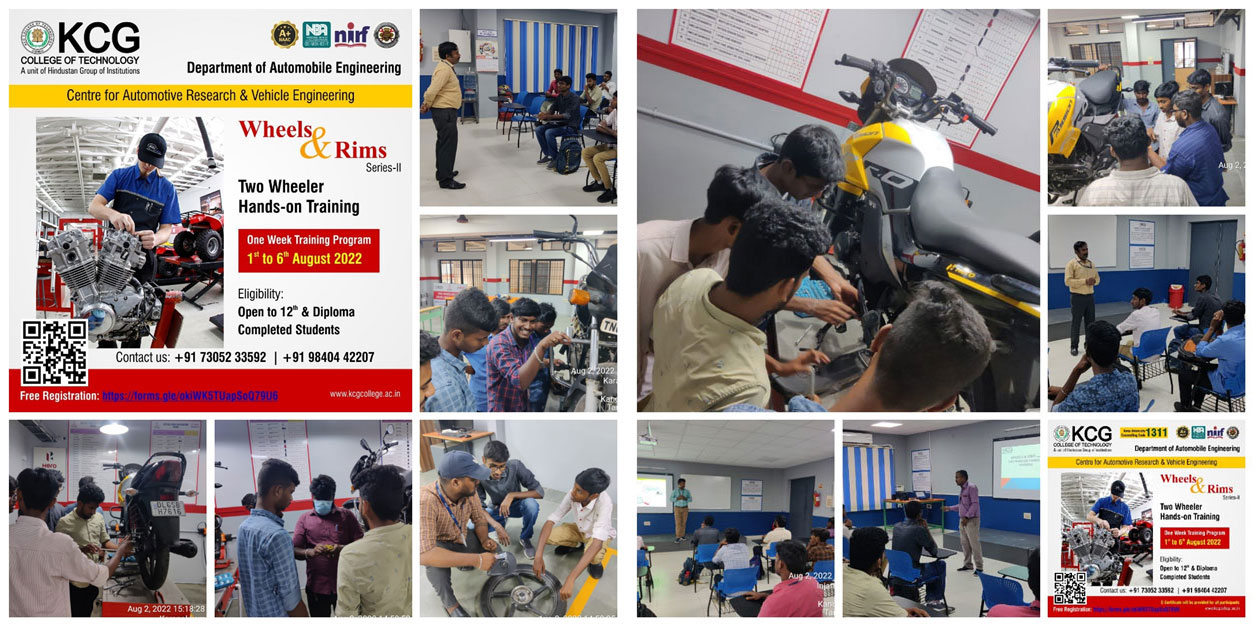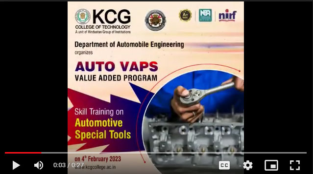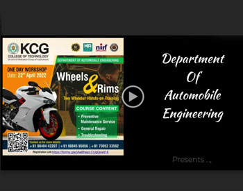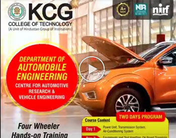 The Department of Automobile Engineering at KCG College was started in the year 2018 with a sanctioned intake of 60 students. The department is equipped with highly qualified faculty of proven ability and state-of-the-art laboratories that cater to the needs of the industry. The department further encourages professional activity of the staff and students through SAE INDIA and also provides value added trainings, workshops and seminars to all the students to gain practical exposure in their area of interest.