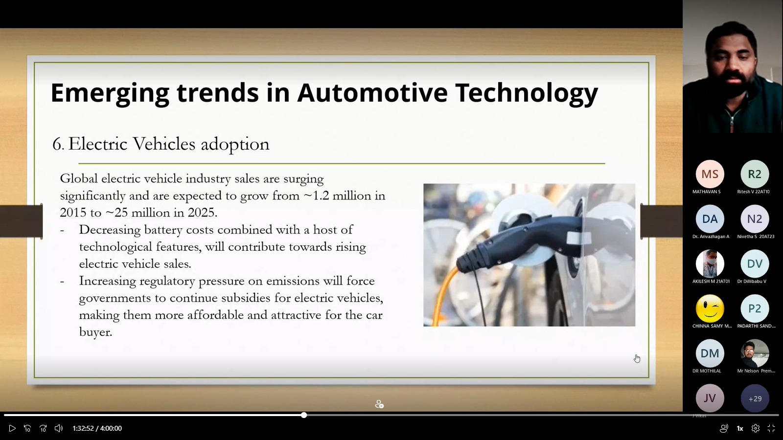 • Second year Automobile student Narayanan has successfully completed the 4 week NPTEL online course ” Electric Vehicles-part-1″