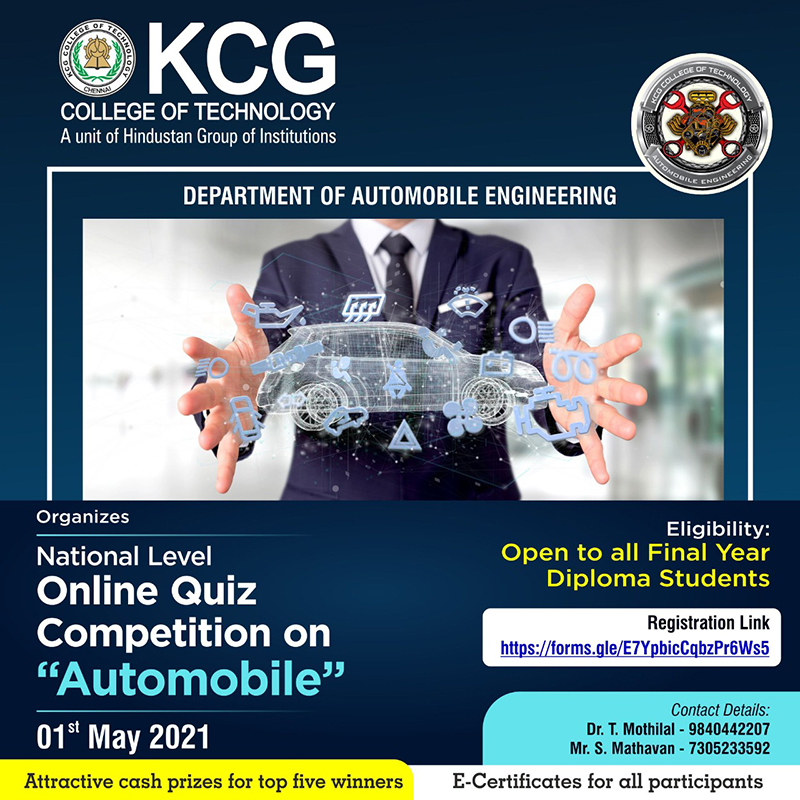 With Tesla creating futuristic cars and autonomous vehicles becoming a near reality, it is undeniable that the automobile industry is growing in leaps and bounds. The increasing concern for pollution-free and fuel-efficient vehicles is driving the need for well qualified engineers in the Automobile Industry to spearhead innovative solutions. KCG college is “Best Automobile engineering college in Chennai”