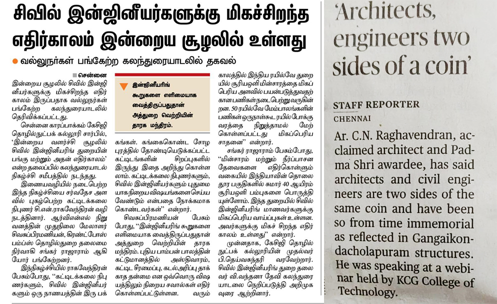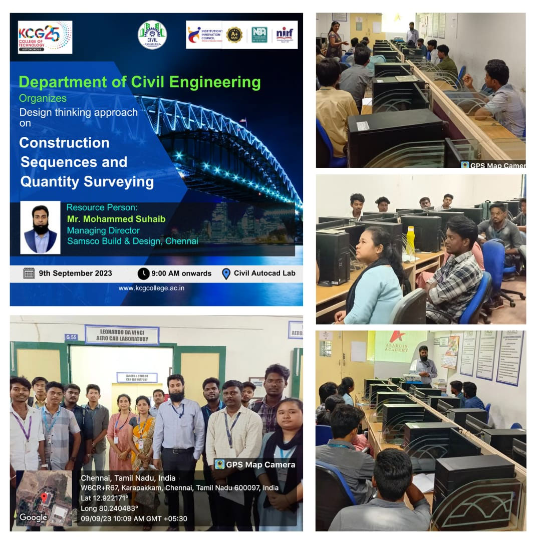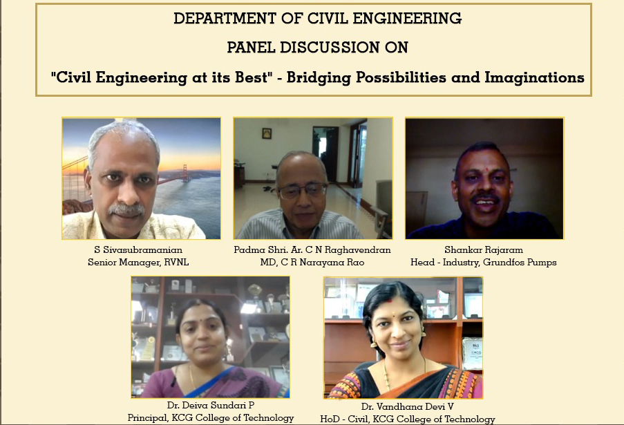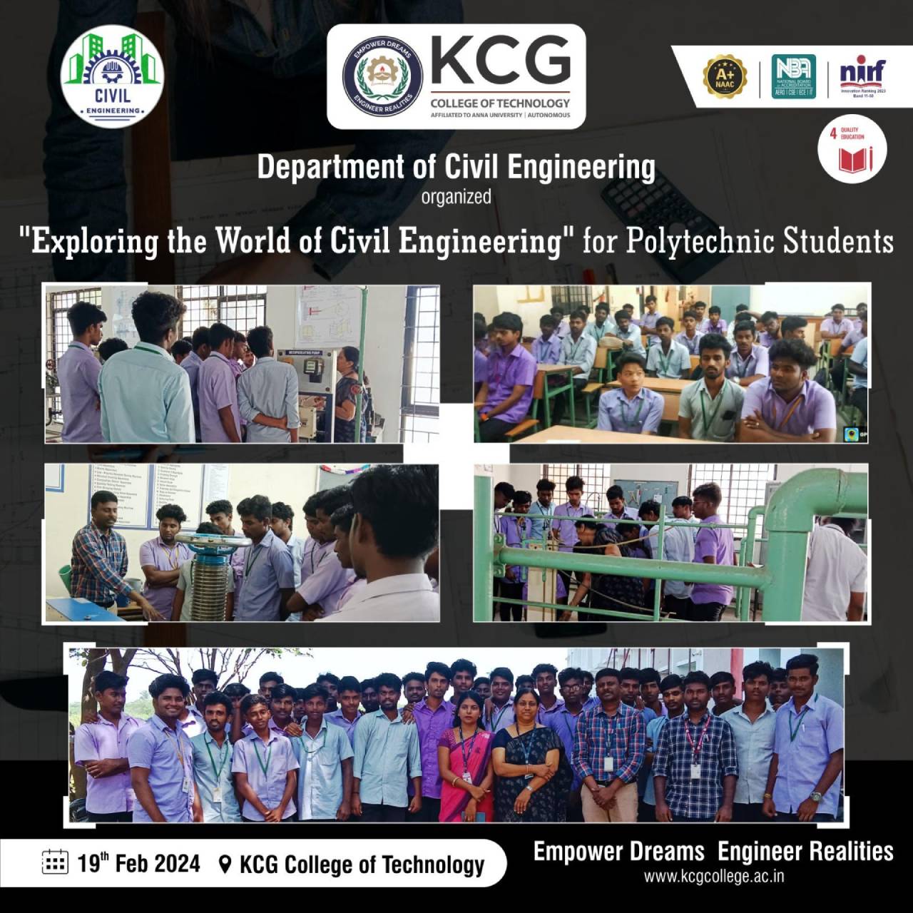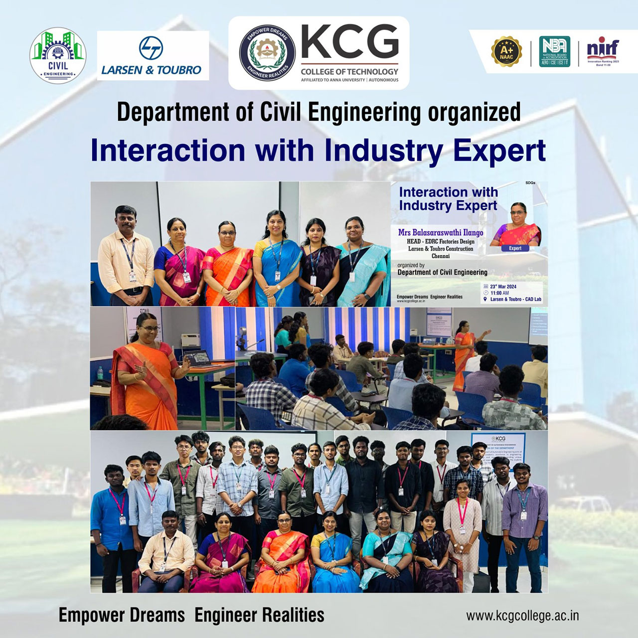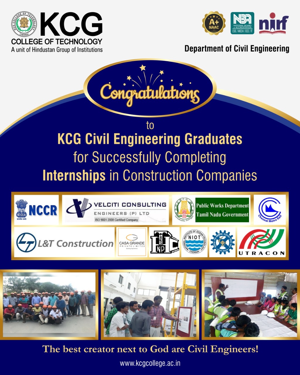 - As an industry collaborative Civil Department has signed MoU with various industries like Builders Association of India (BAI), National Centre for Coastal Research (NCCR), KKM Soft Pvt Ltd., on staff training and student training and research on development of new products.