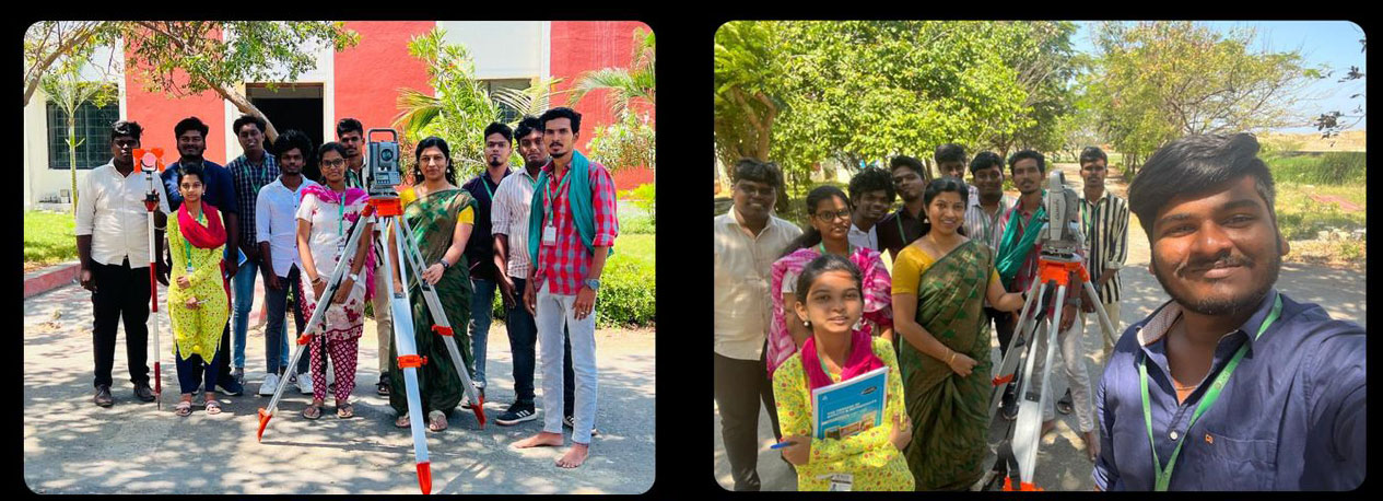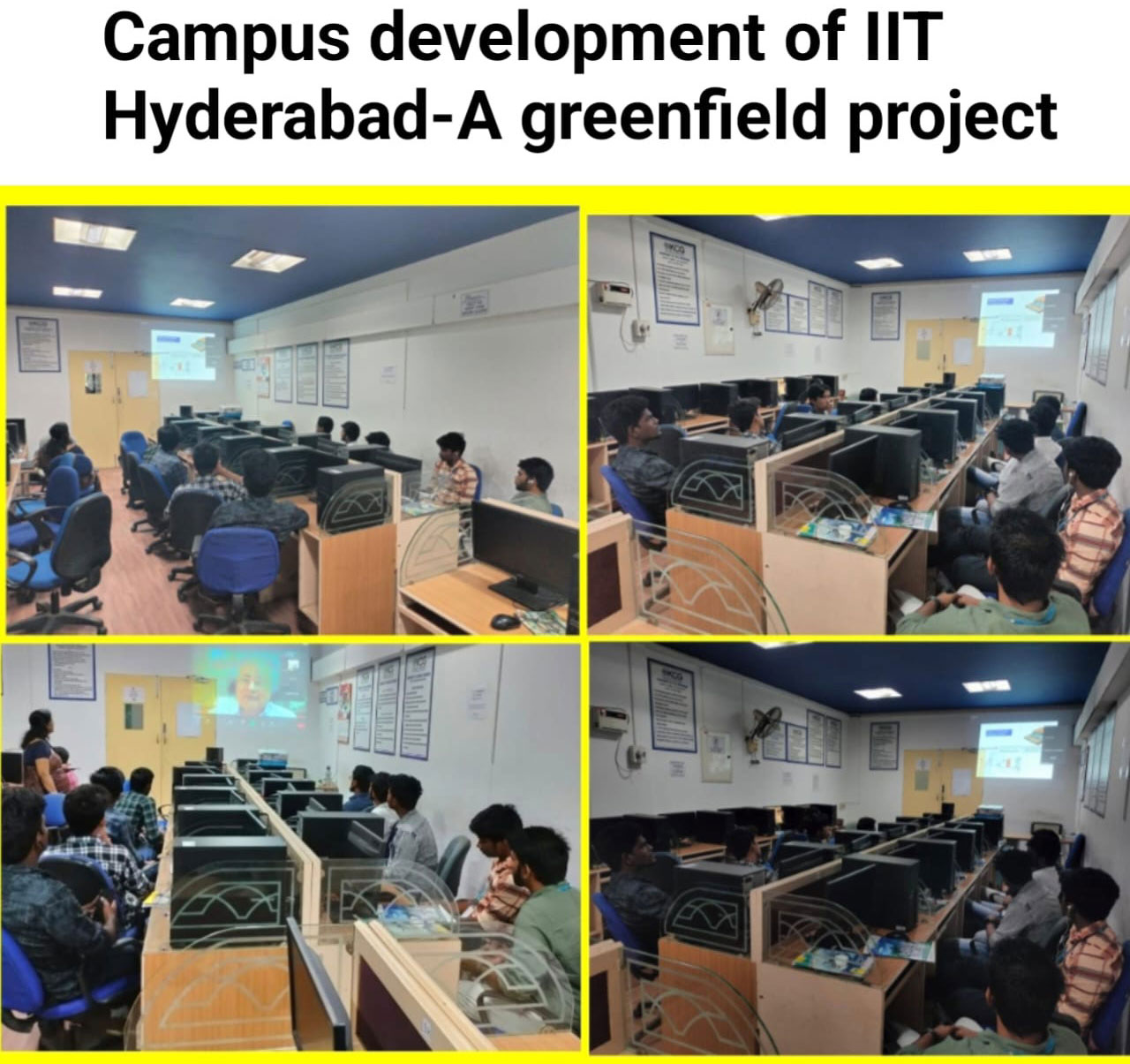 | Hands on Training on Total Station- Polytechnic students | Students attending a webinar on Campus Development of IIT Hyderabad – A Greenfield Project |