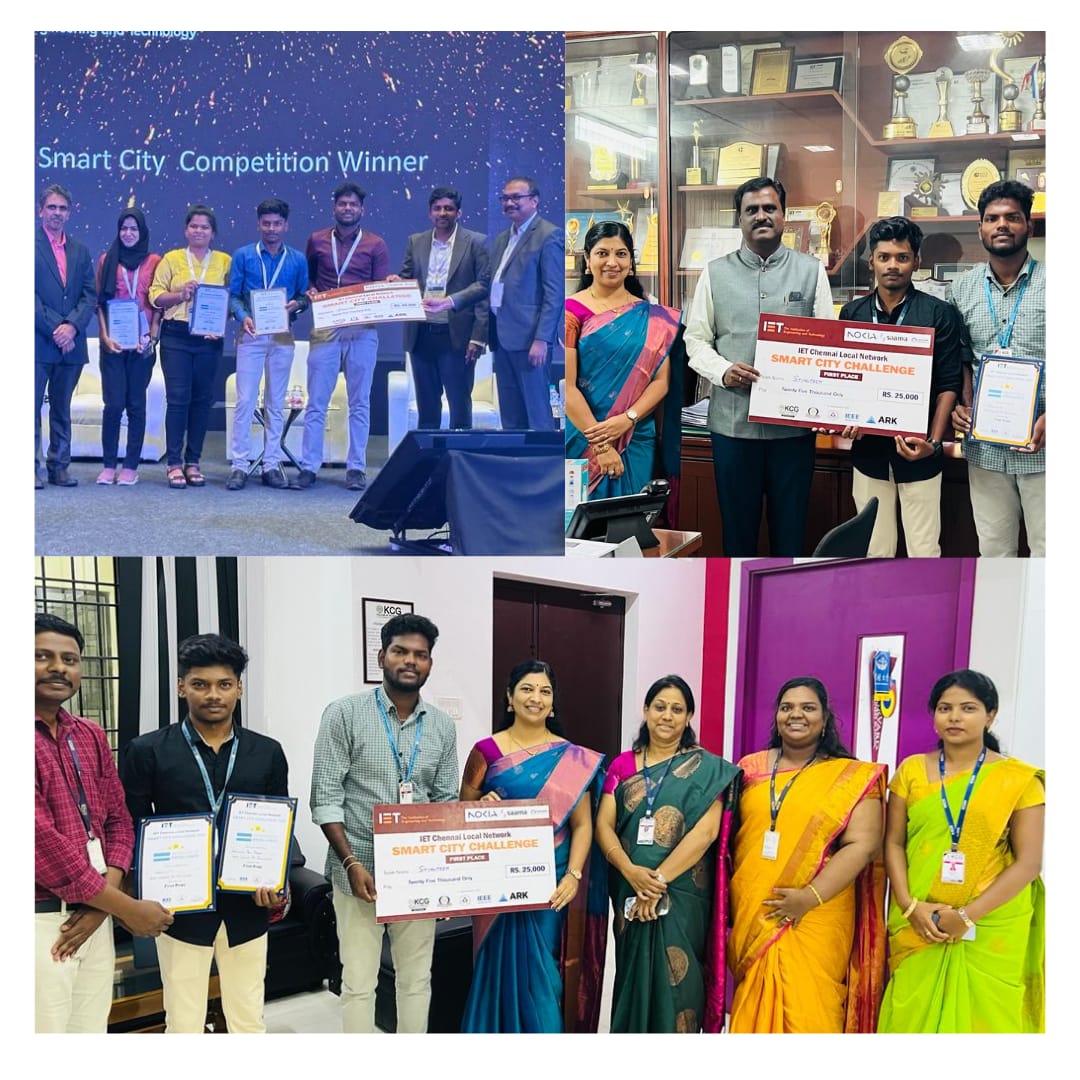 Vasanth.M and Heavenly Paul Roshan.S won First prize with cash prize of Rs. 25,000/- in the Smart City Challenge 2023 organized by The Institution of Engineering and Technology on 01.09.2023