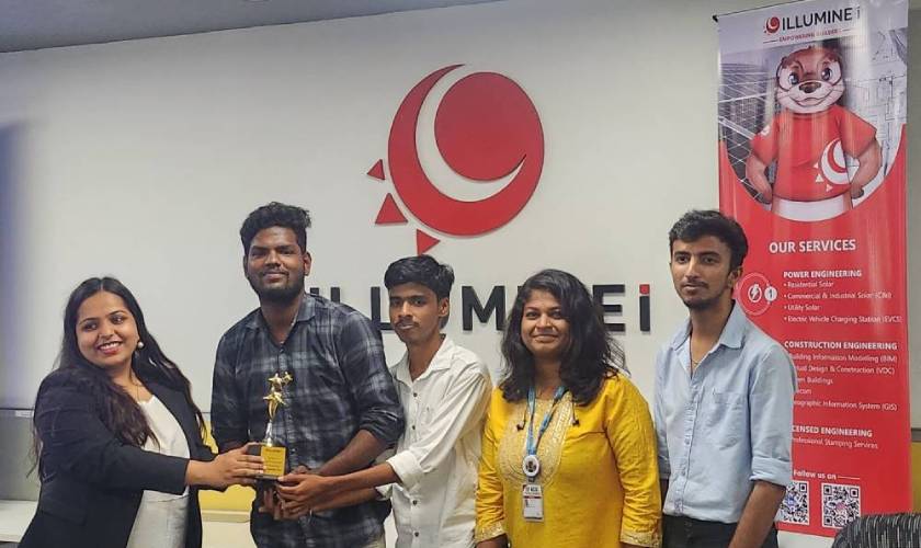Our Students Vasanth.M, Manoj Kumar.J.N and Padmashree.P of Pre final year won First prize in Event Young Professional in Sustainability conducted by Illuminei for project entitled solar farms over cooum river under the Guidance of Dr.V.Vandhana Devi on 28.10.2023