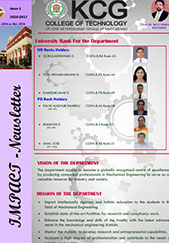 The department aspires to become a globally recognized centre of excellence by producing competent professionals in Mechanical Engineering to serve as a valuable resource for industry and society.