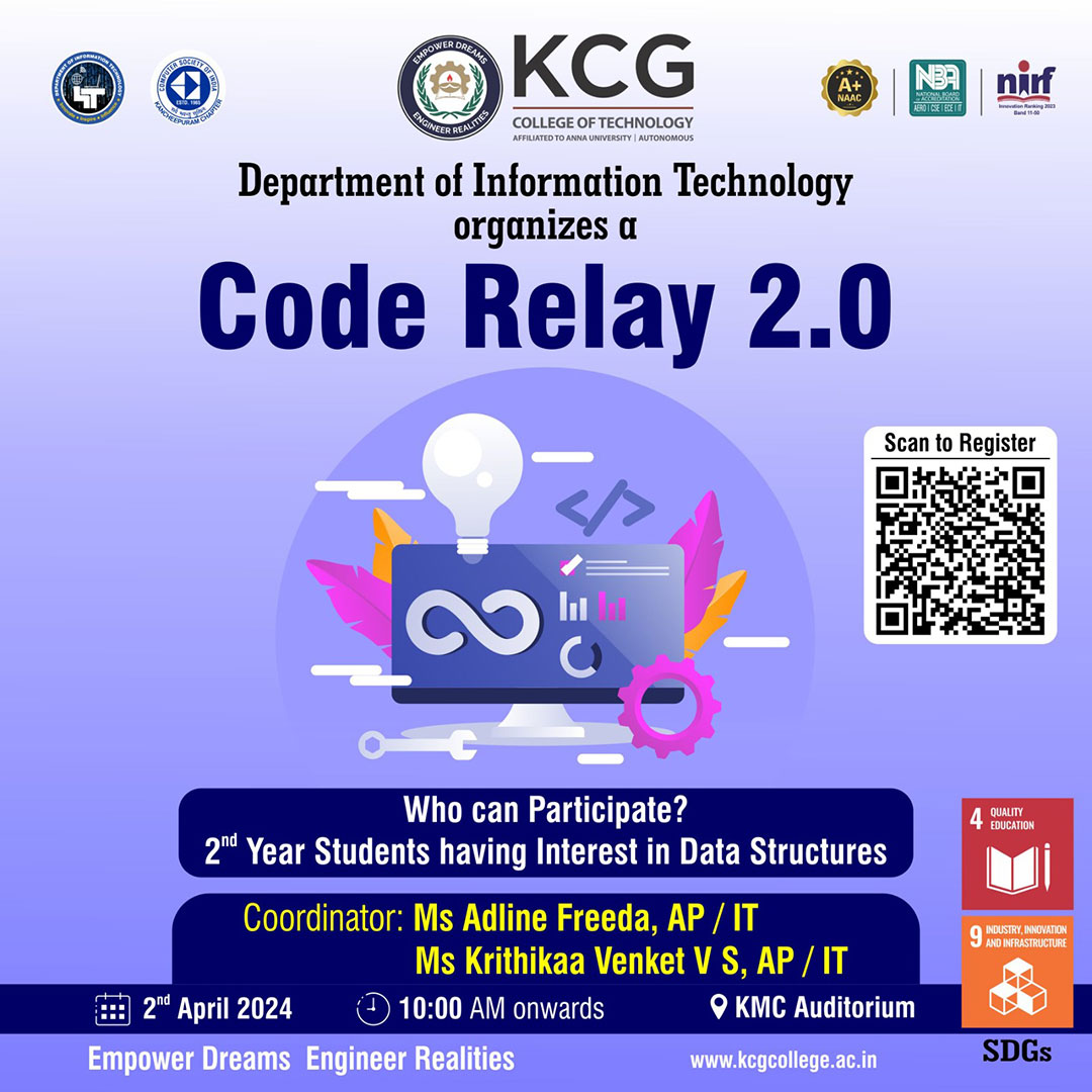 Objectives: The purpose of conducting this CSI Sponsored Code Relay 2.0on Problem Solving Using Data Structures to the students is to bring awareness about the use of data structures in problem solving.