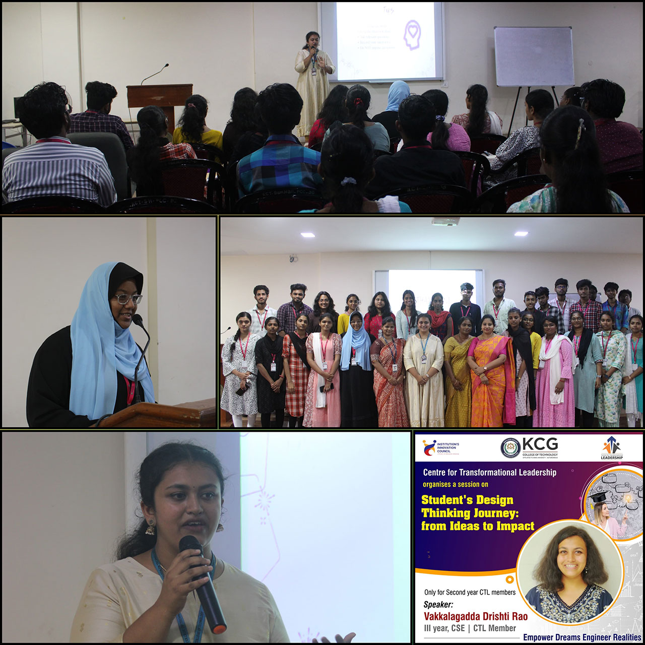 CTL conducted a Seminar on Student’s Design Thinking Journey: from Ideas to Impact on 24th February 2024. Ms. Vakkalagadda Drishti Rao, III year, CSE & Secretary – CTL shared her insights and experiences with second year CTL members. Drishti shared her firsthand experience from the CTL challenge, offering practical insights into the design thinking process. The content covered various aspects, including a comprehensive overview of design thinking methodology, guidance on problem statement framing, brainstorming techniques, ideation, prototyping, and presentation skills. The session was interactive, with Drishti actively engaging the audience by presenting real-world problems for students to practice framing as design thinking challenges. A dedicated feedback session allowed students to share their thoughts and ask questions, fostering open discussion. Overall, the session received positive feedback, with students finding it valuable and beneficial for their participation in the upcoming 2024 Design Thinking Challenge.