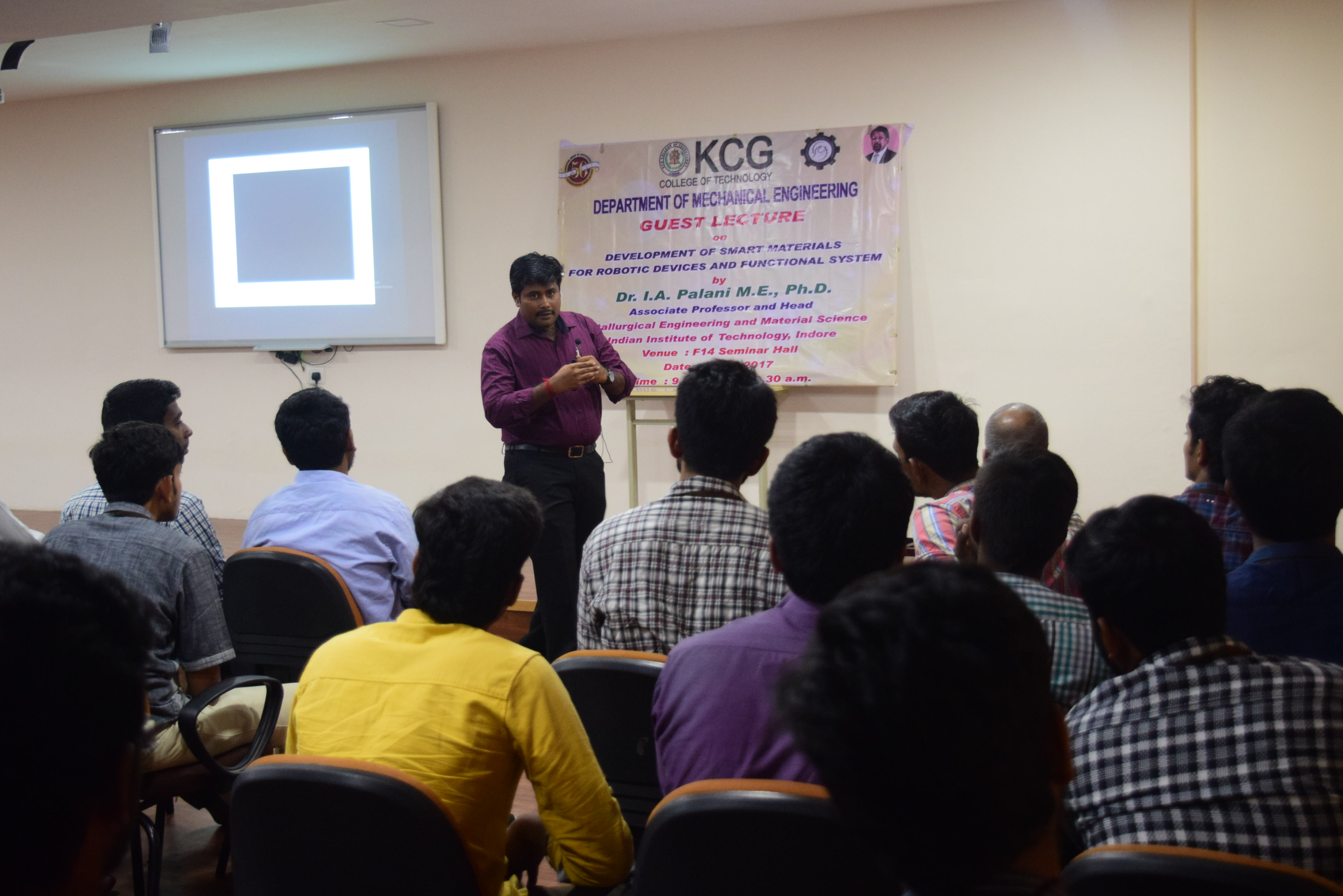 The department of Mechanical Engineering organized the guest lecture on “Development of Smart Materials for Robotics and Functional System “ at F14 – Seminar Hall on 07.07.17.