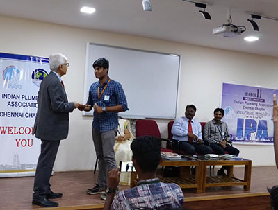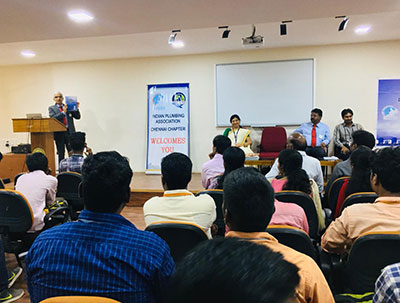 Mr. Abbas Shabbir Lehry, Chairman, IPA Chennai Chapter and Mr. Shankar, IPA mentor for KCG College of Technology were the Chief Guests for the Seminar on World Plumbing day. Dr. V. Vandhana Devi welcomed the Chief guests and Dean (Academic) for the Seminar. The Head of the Department stated that the purpose of this seminar was to create awareness about the importance of water in our lives and show ways to conserve this most important source of life. She encouraged her faculty and students to interact with the Chairman, IPA regarding the latest trends in plumbing industry and internship training for students to meet the industrial standards. Dr. Vandhana also emphasised on the need to save water by civil engineers. She also elaborated about the sustainable use of water resources for future generations.