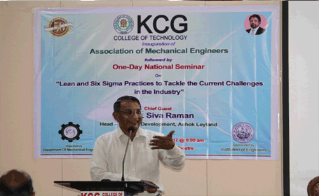 Speaking on the occasion Dr.L. Sivaraman urged the ‘Young Leaders’ to uphold the values of the Mechanical Engineering and discharge the duties honestly and impartially. It was followed by an address on Lean and Six Sigma Practices in Industry, which helped the understudy to pick the information about their administration and its significance over the enterprise.